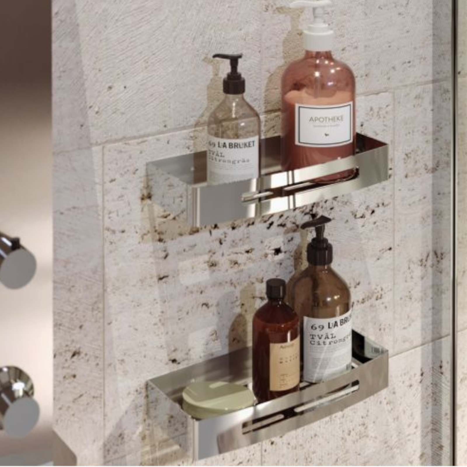 Mensola doccia rettangolare da 30 cm in acciaio inox cromato