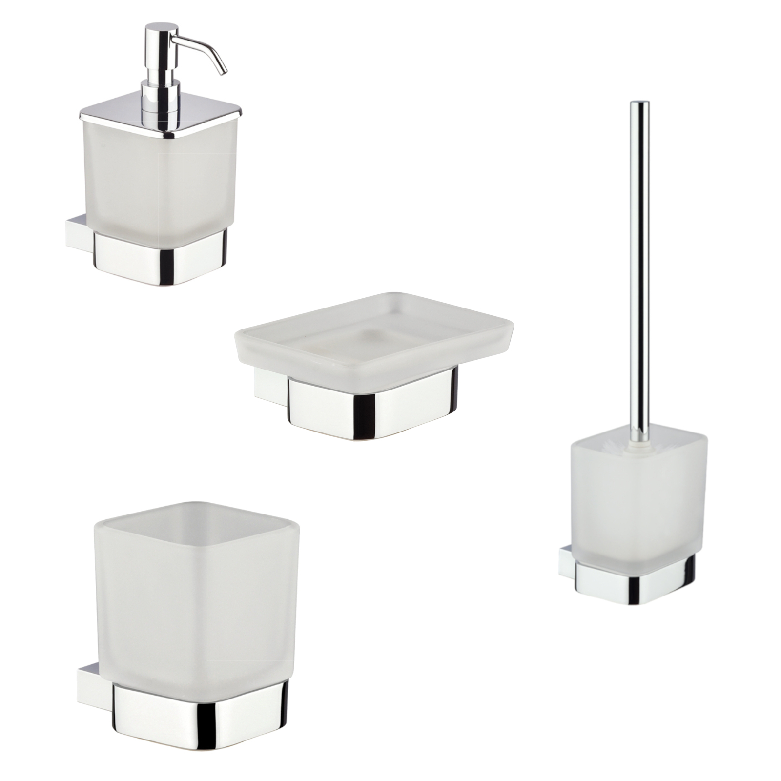 Set 4 accessori bagno a muro domino in vetro satinato
