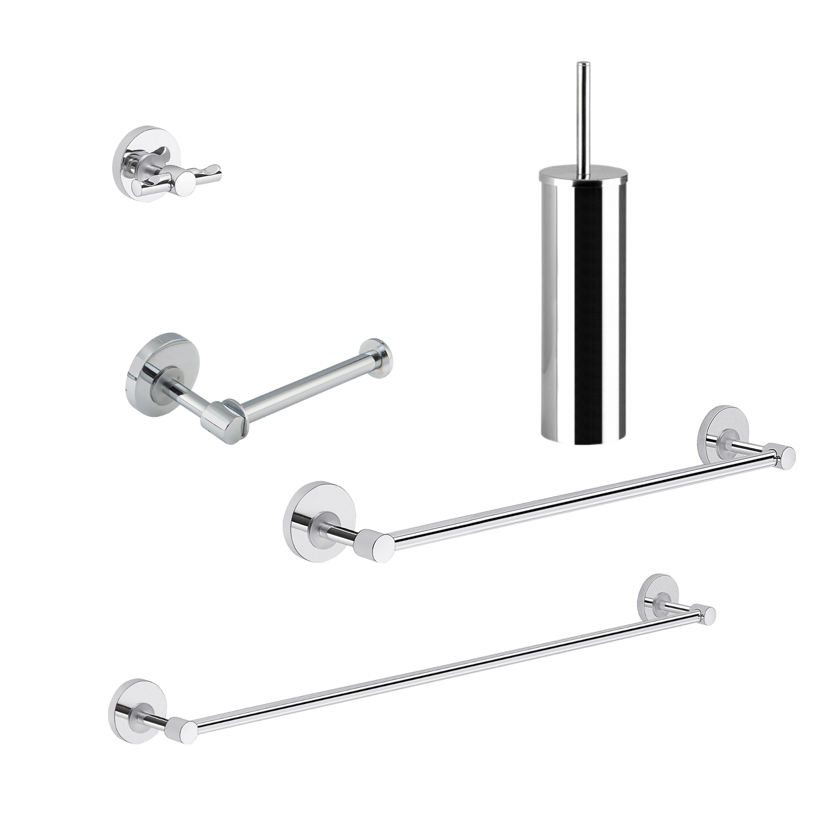 Set 5 pezzi accessori bagno a muro ficus in acciaio inox e cromall