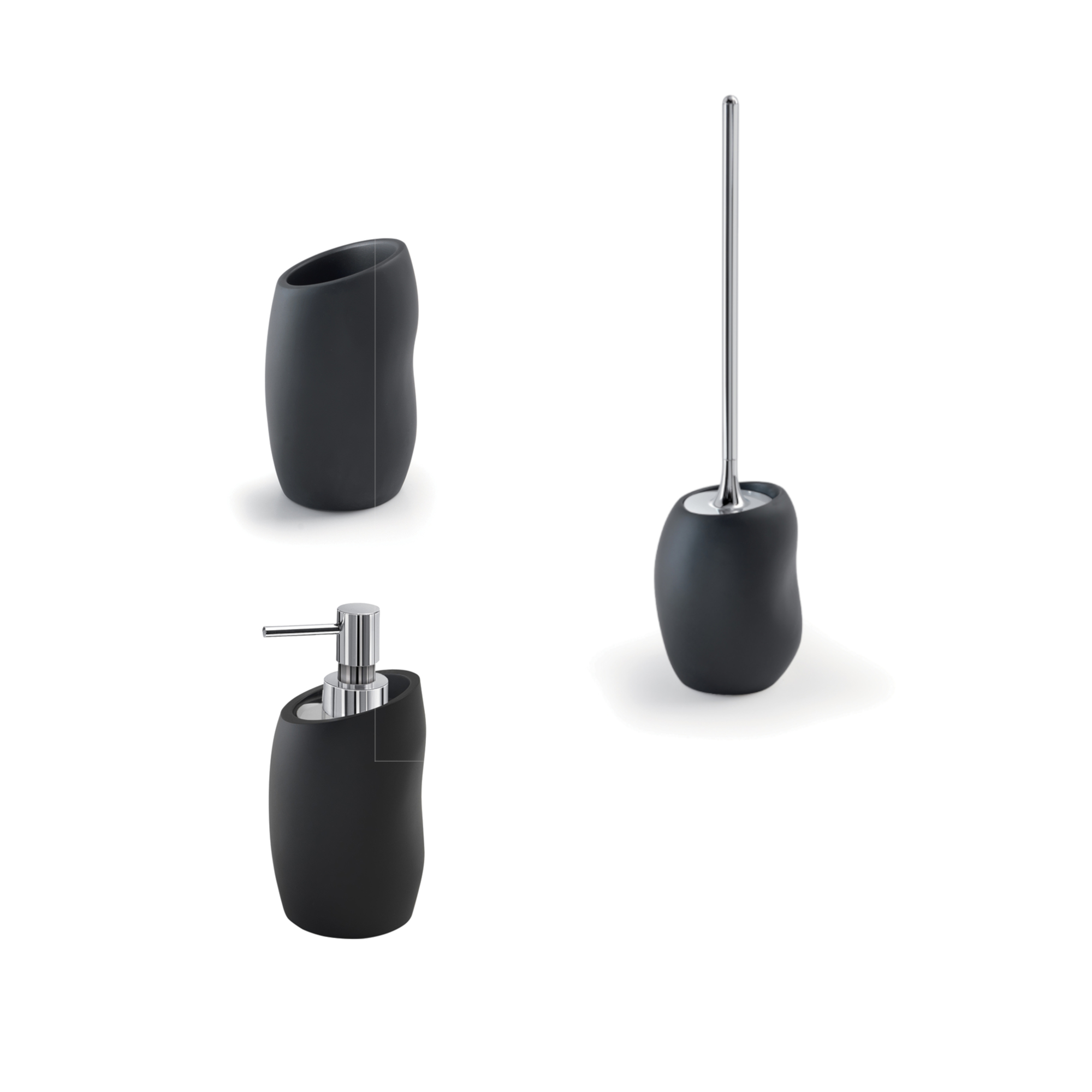Set 3 pezzi accessori bagno iside nero opaco in resina e sabbia