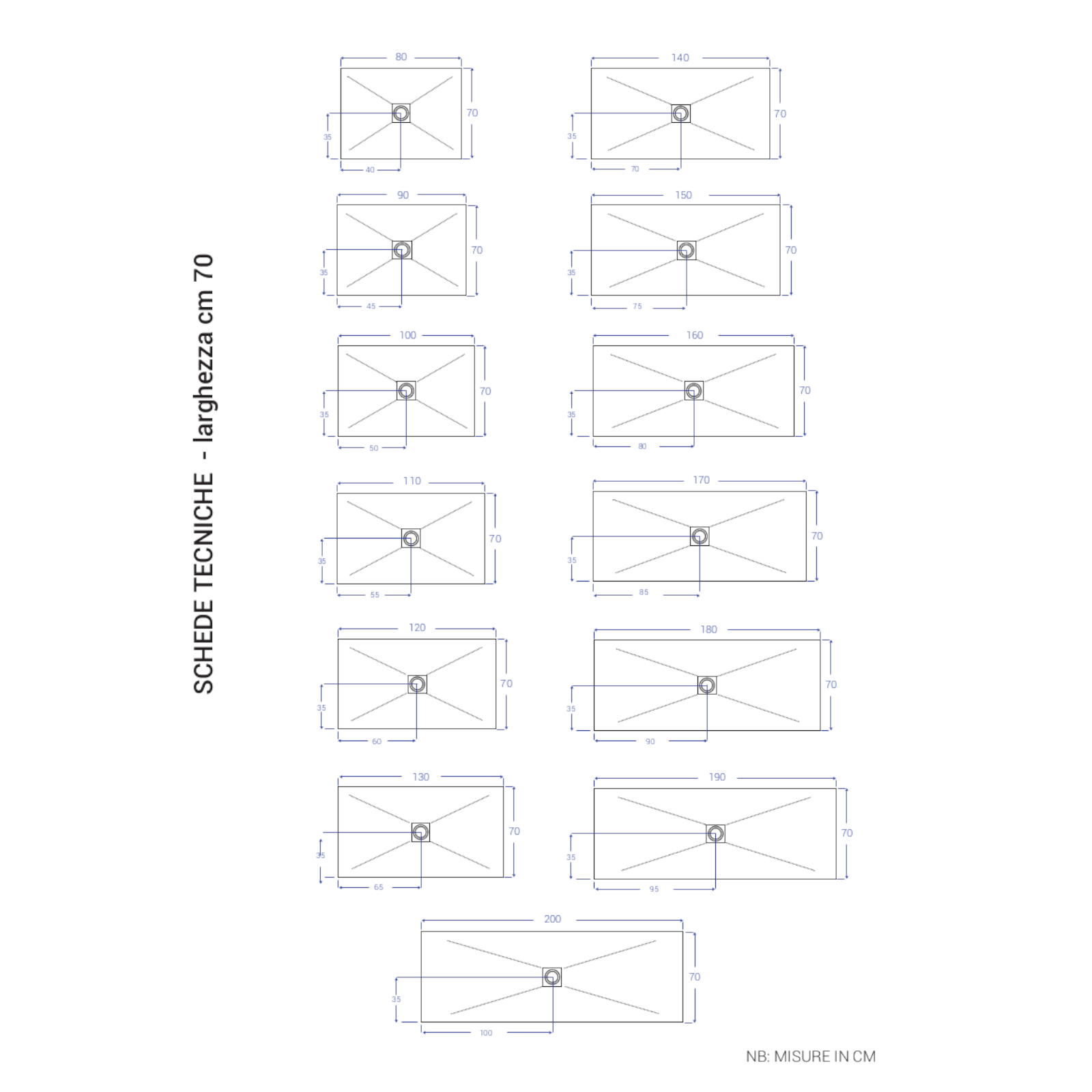 Piatto doccia grigio 70x140 cm in marmo minerale con griglia e piletta