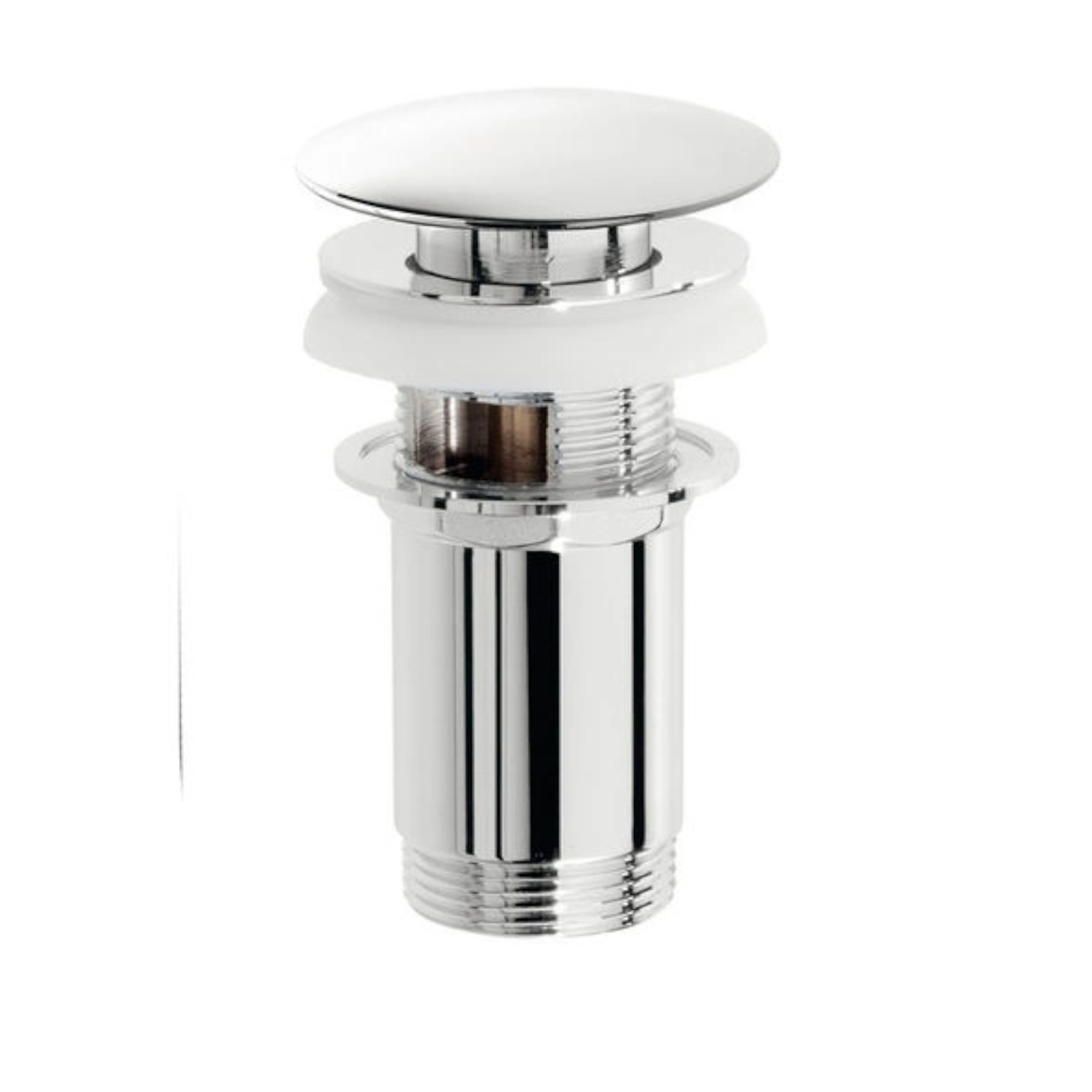 Piletta click-clack tonda in ottone cromato versione standard 1"1/4 Questo prodotto è ideale per installazioni su bidet e lavabi con foro "troppo pieno" la forma è tonda ed è facilmente abbinabile ad ogni tipo di stile di arredo bagno. I materiali di costruzione sono di alto livello, l'ottone impiegato per la lavorazione rispetta le rigorose norme europee ISO