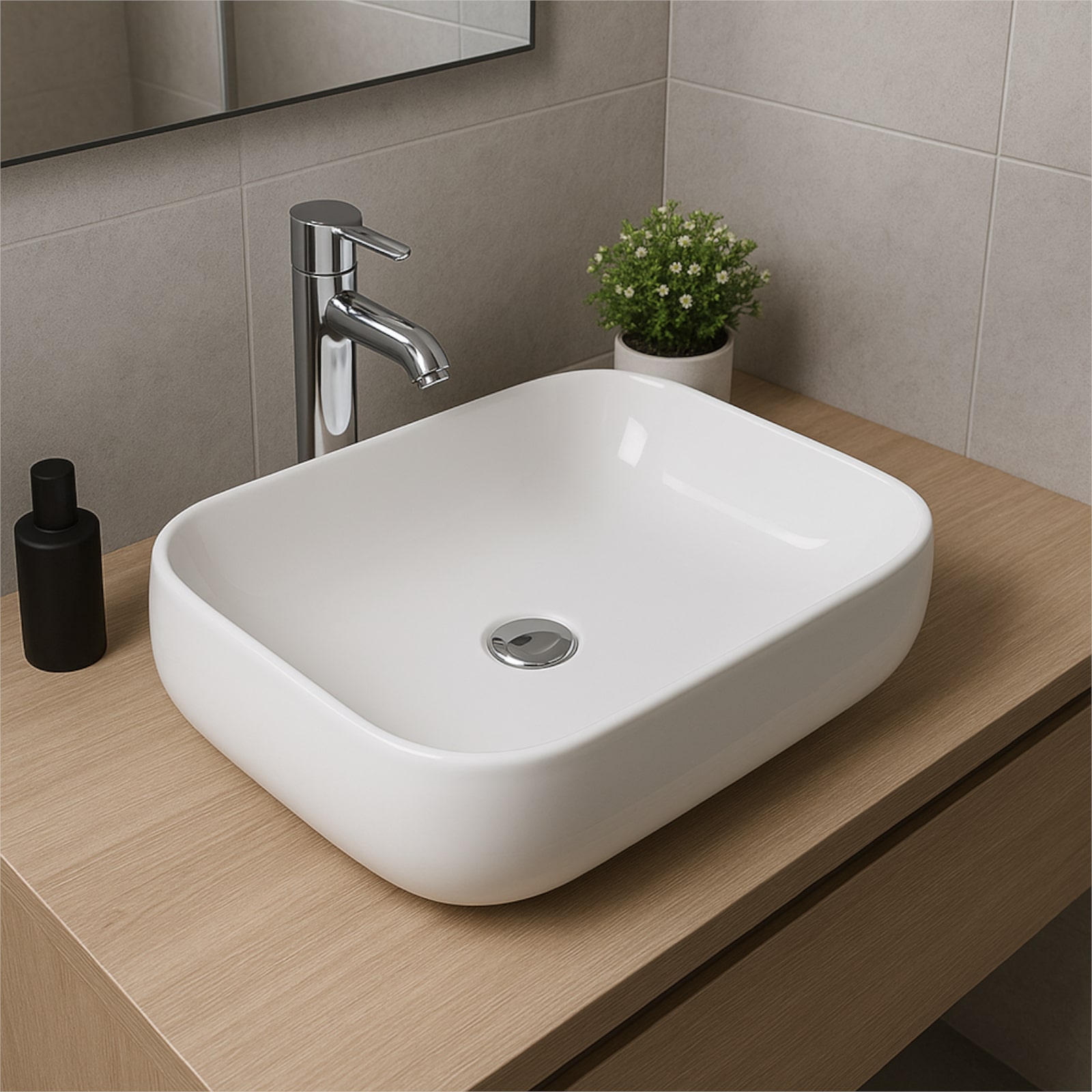 Il design rettangolare e lineare del lavabo da appoggio Euroceramica lo rende un complemento d'arredo particolarmente versatile, adatto sia a bagni moderni che tradizionali. La ceramica bianco lucido conferisce un aspetto elegante e minimalista, ma al tempo stesso garantisce la massima funzionalità, offrendo una superficie resistente ai graffi e alle macchie. Grazie alla forma compatta, può essere facilmente integrato in piccoli spazi o utilizzato in configurazioni doppie per bagni più grandi, permettendo una personalizzazione secondo le esigenze specifiche.