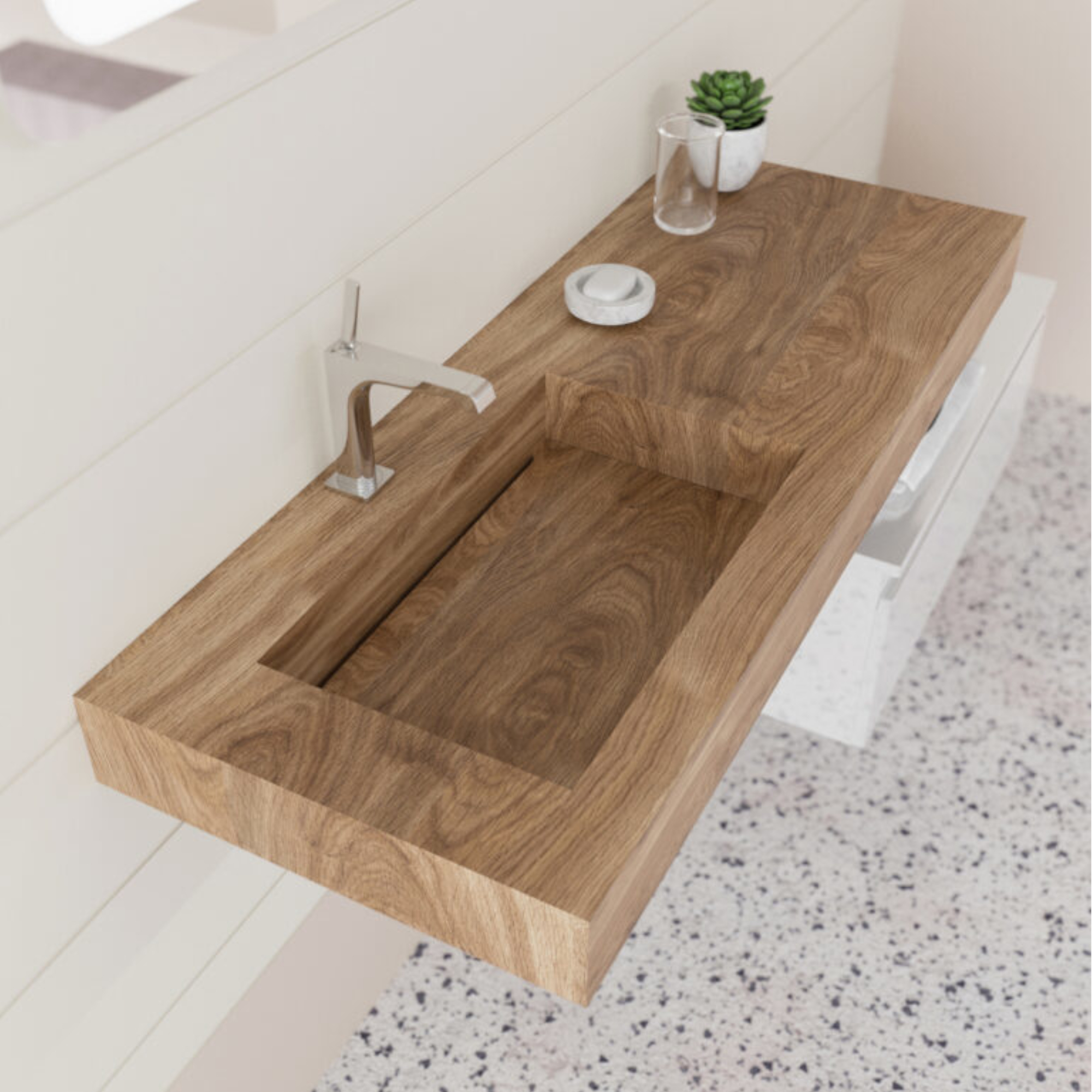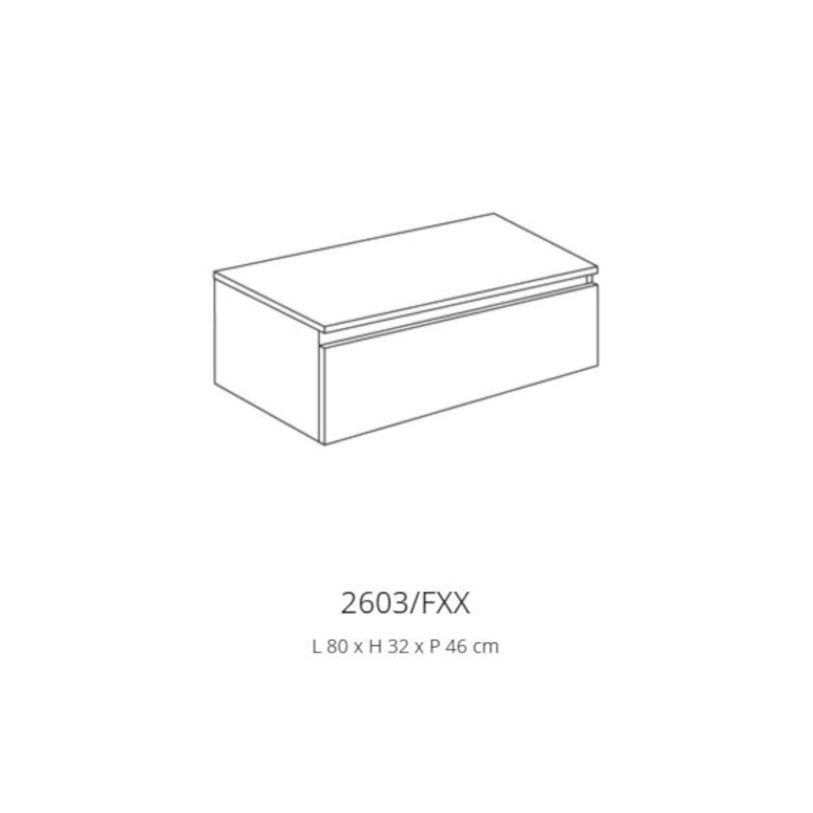 Lavabo in hpl da 120 cm con cassettone bianco opaco 80 cm e specchio filo lucido