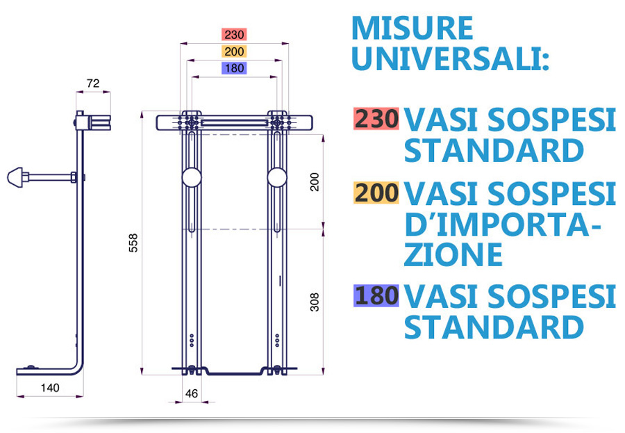 Staffa singola universali per bidet e wc sospesi