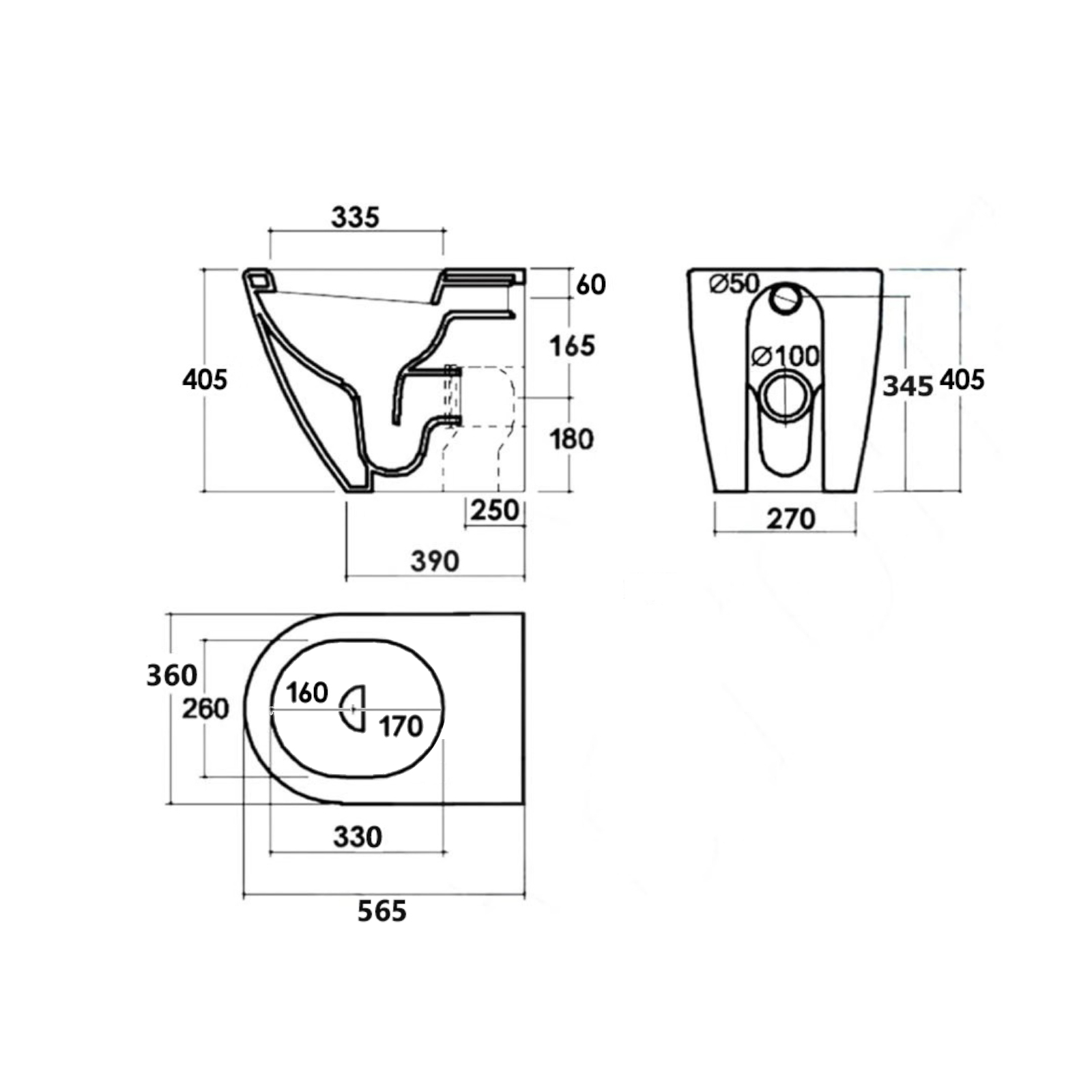 - Dimensioni WC: 36,5 x 56,5 x 40,5 cm