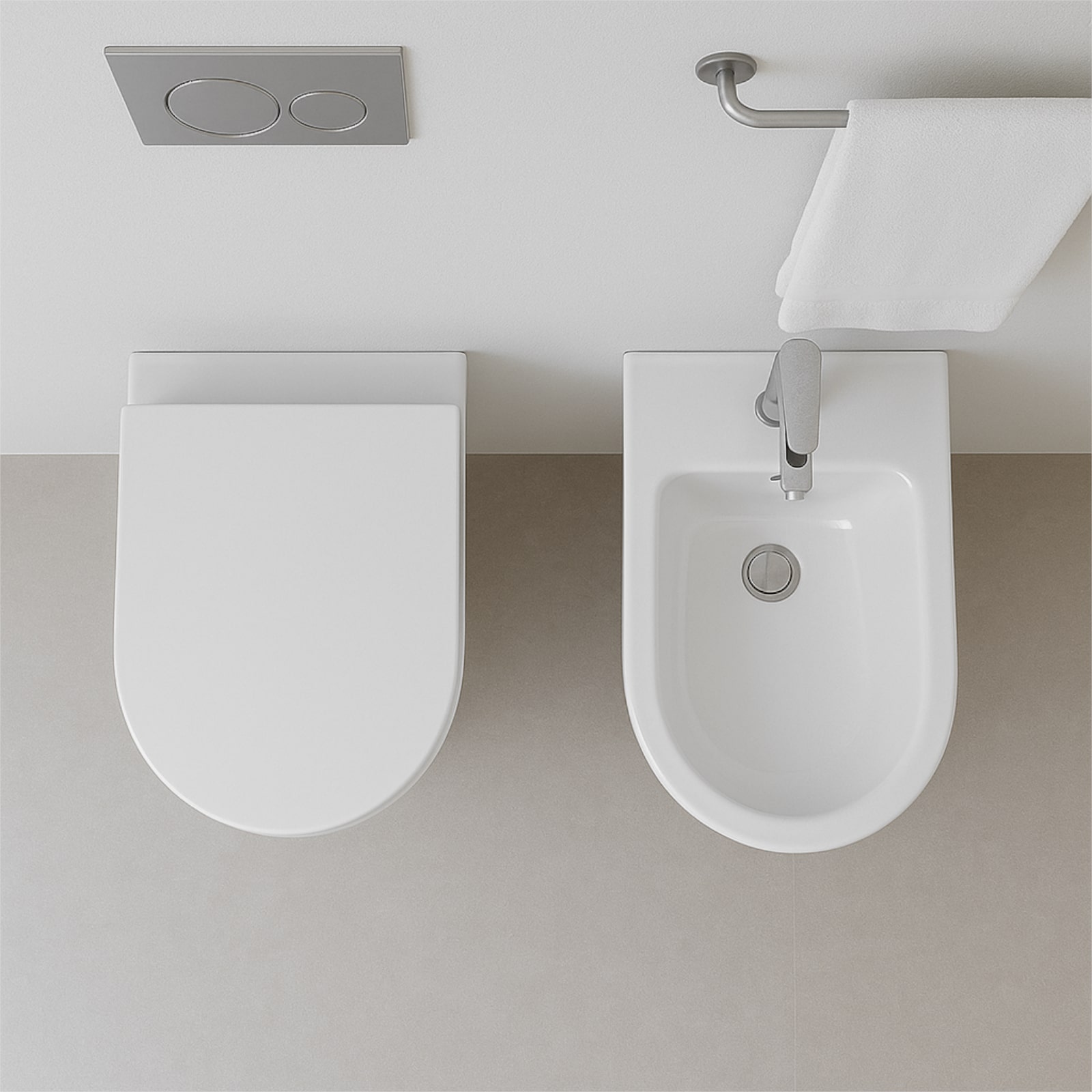 Realizzati con ceramica di alta qualità, i sanitari Croma di Euroceramica presentano un design minimalista ed elegante che conferisce al bagno un aspetto raffinato e contemporaneo. La ceramica utilizzata è resistente ai graffi e facile da pulire, garantendo una durata nel tempo e una semplicità di manutenzione. Il design senza brida non solo migliora l'estetica complessiva, ma riduce anche i punti difficili da raggiungere dove si possono accumulare sporco e batteri, promuovendo un bagno più igienico e sano.