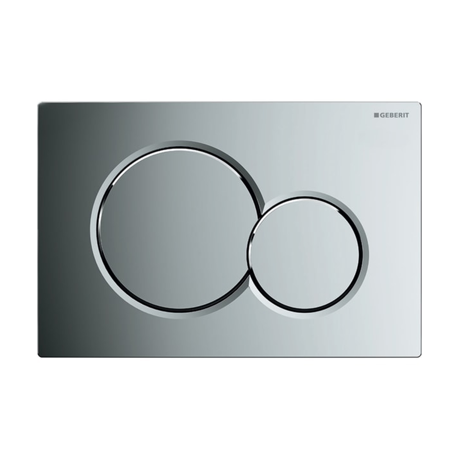 Placca doppio comando Sigma01 di Geberit cromata lucida per cassette di risciacquo incasso.