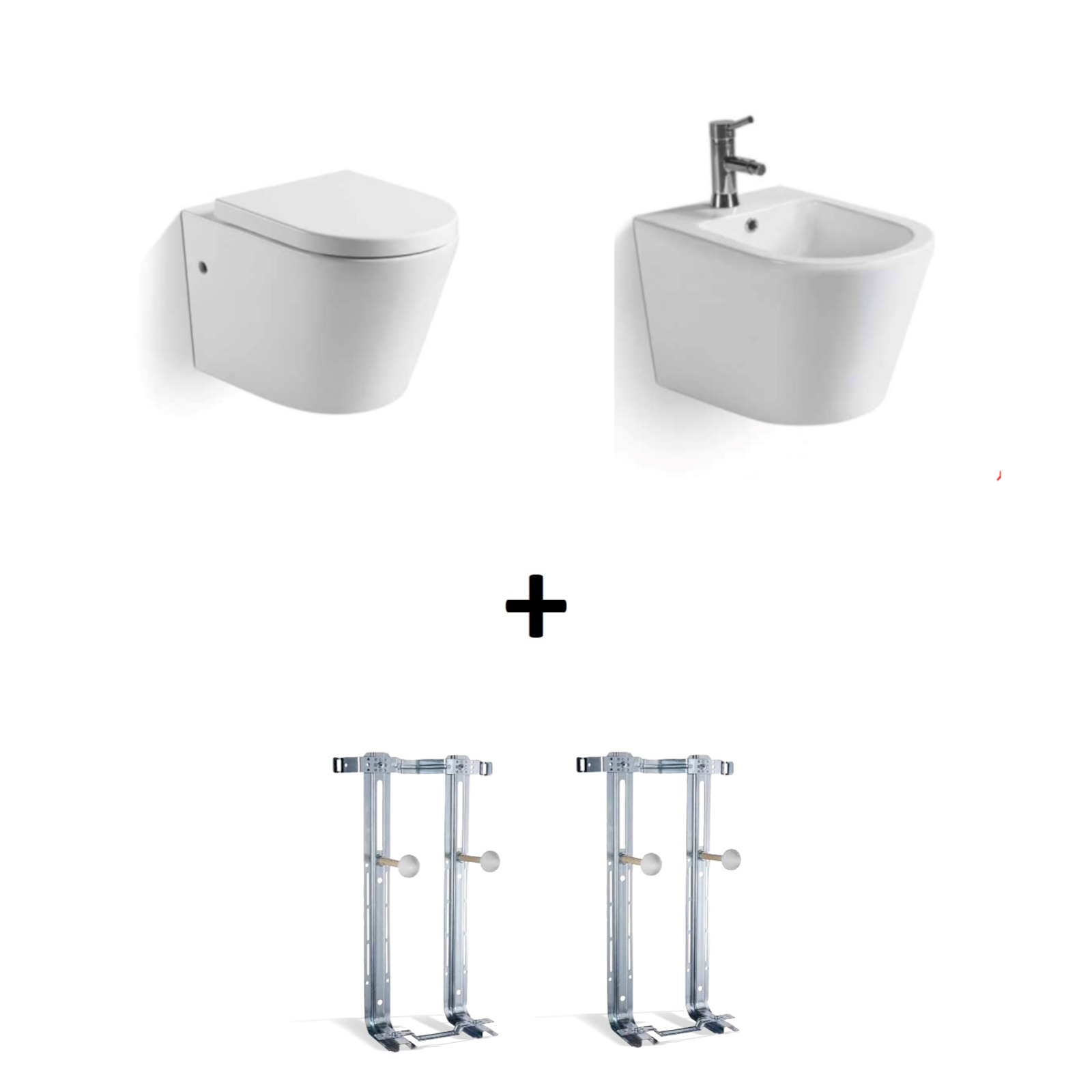 Sanitari sospesi rimless vaso bidet coprivaso avvolgente e staffe in ceramica bianca