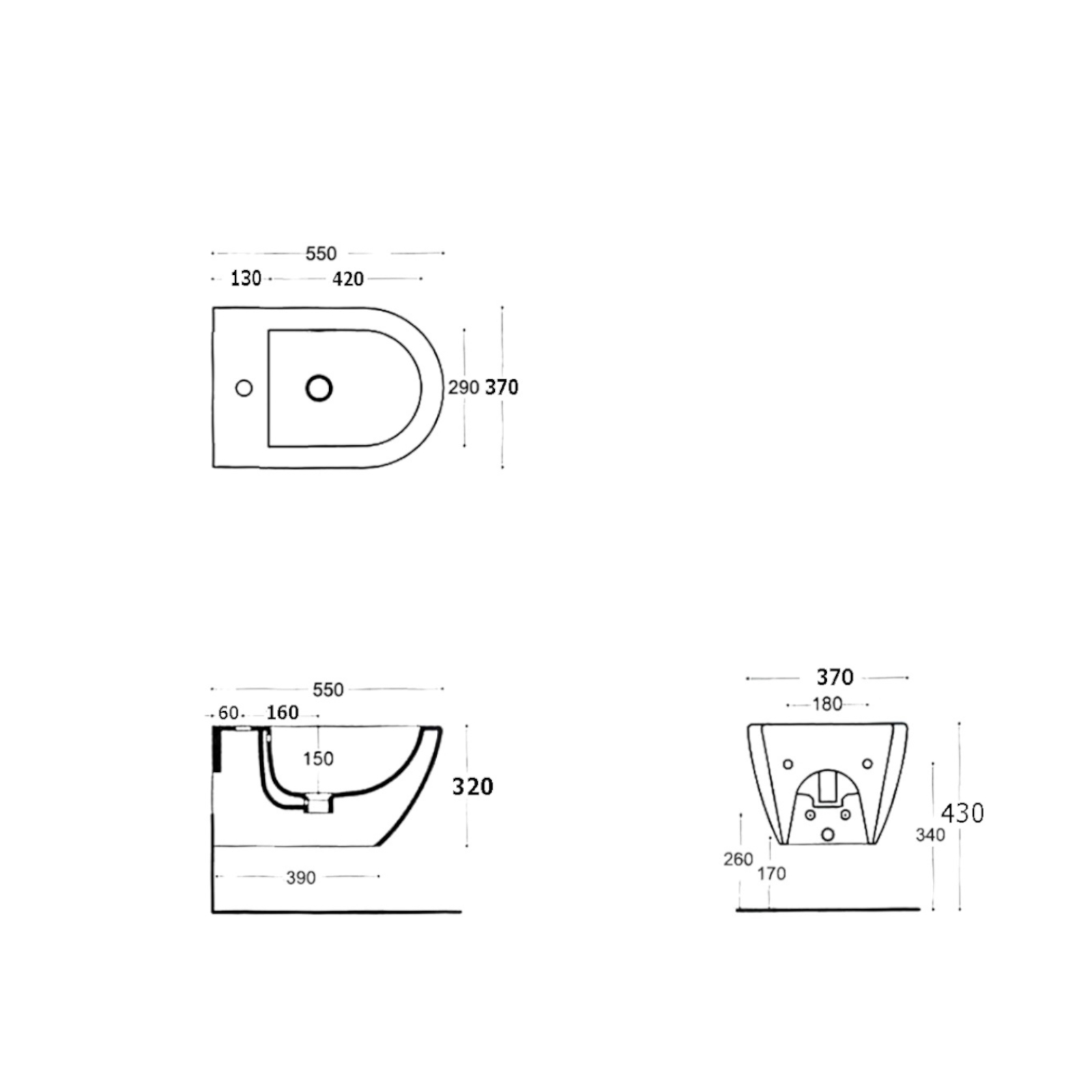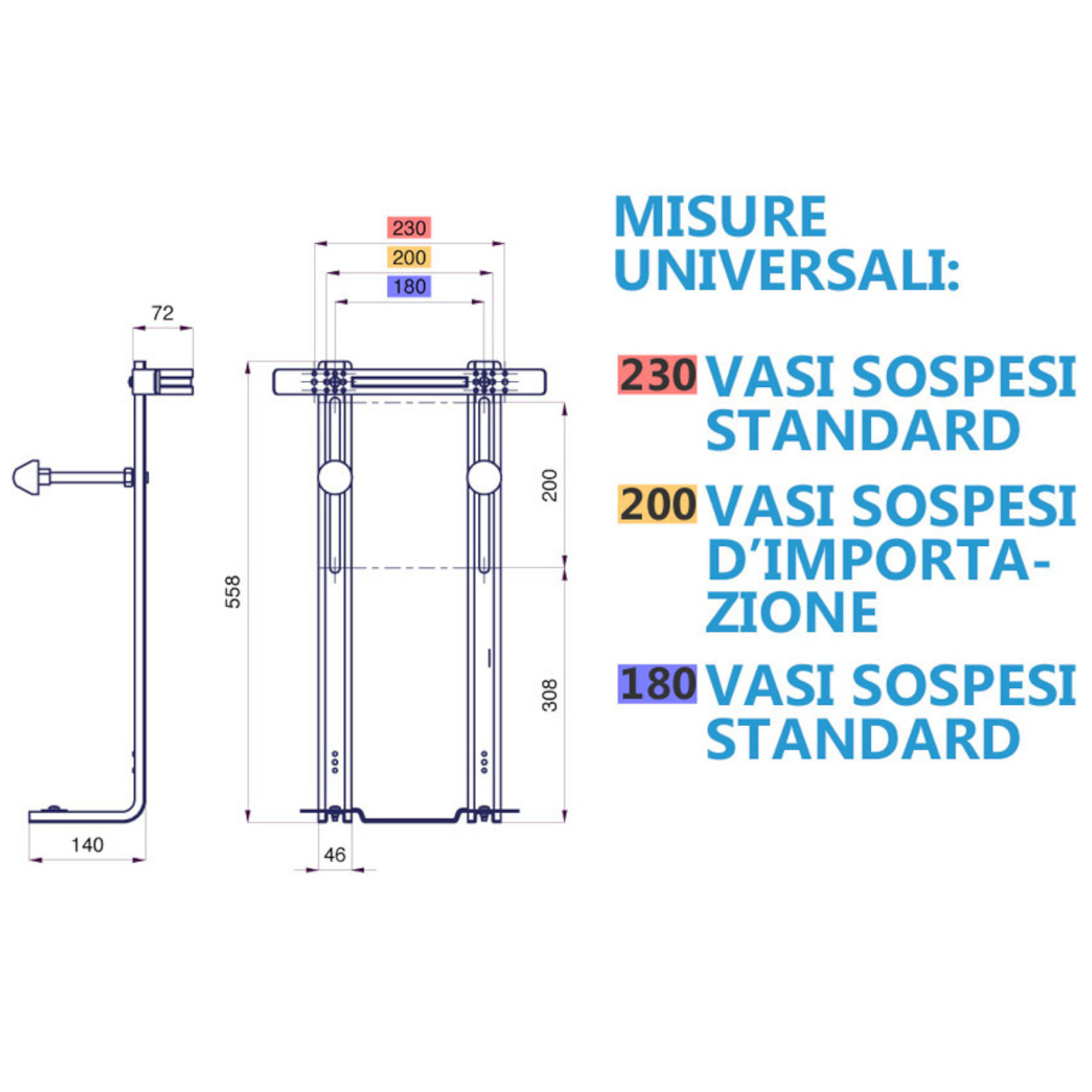 Sanitari sospesi senza brida vaso bidet coprivaso avvolgente e staffe in ceramica bianca