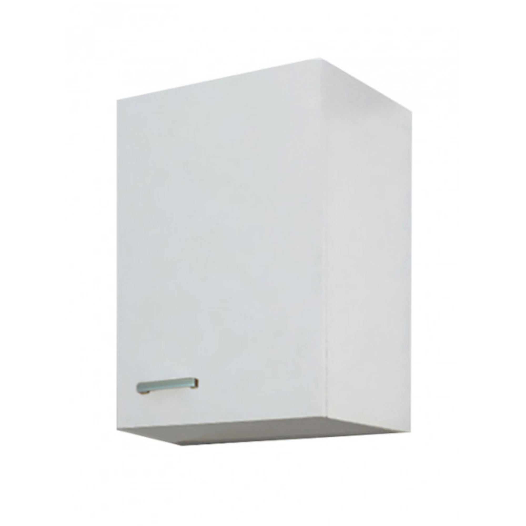 Pensile da 40 cm in mdf bianco, con finitura lucida che alleggerisce i volumi, allargandone l'ambiente.