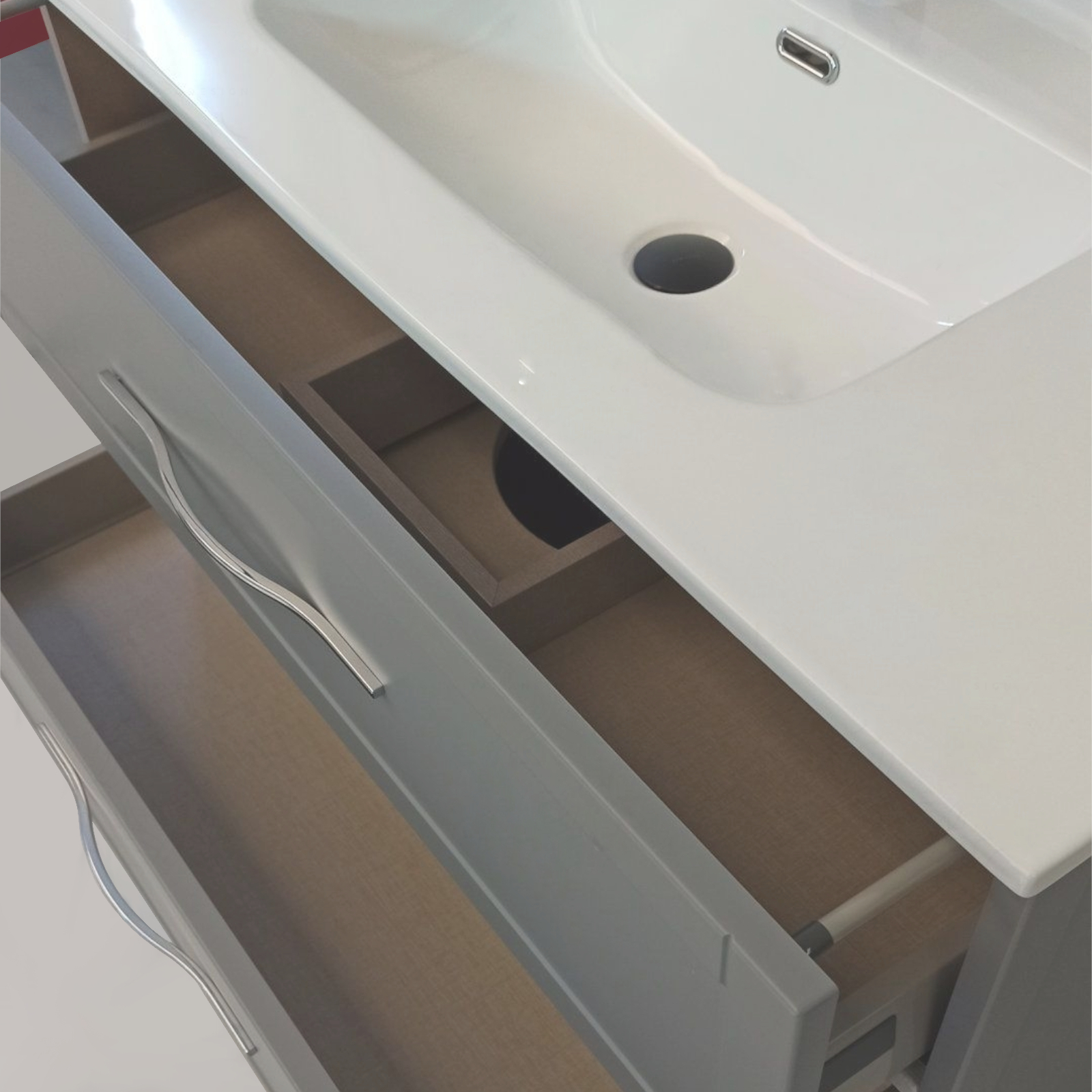 Link correlati a "Mobile bagno sospeso cleo 100 cm grigio nuvola doppio cassetto con specchio"