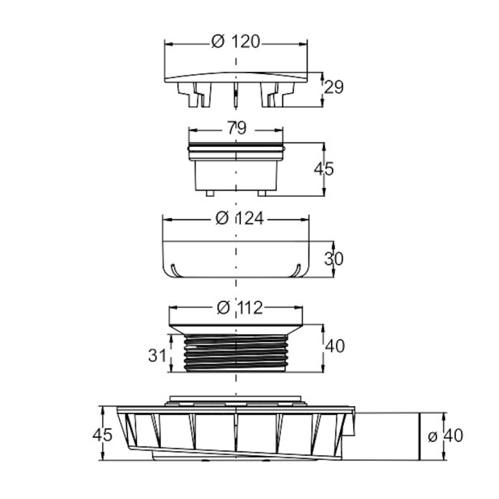 Piletta di scarico ribassata da 90 mm con filtro anti odore