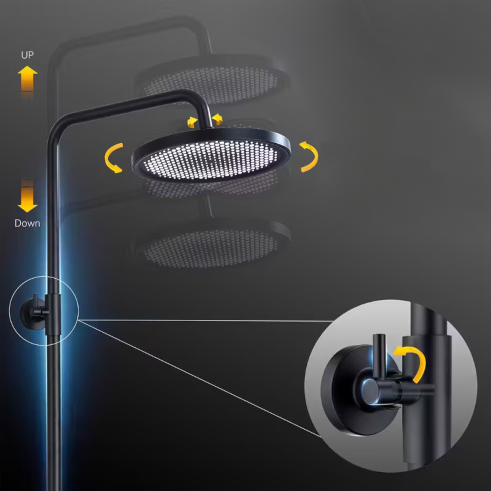 Colonna doccia telescopica tonda nera con miscelatore termostatico | Ortigia