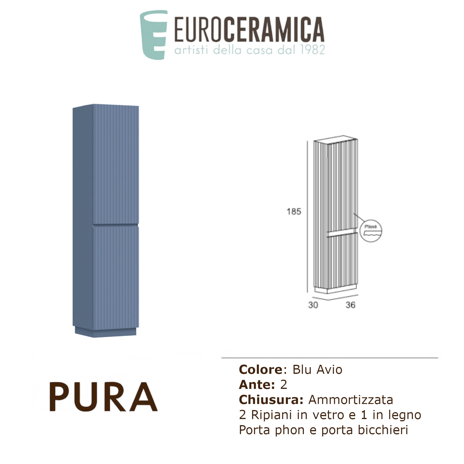Colonna a terra cannettata h. 185 cm blu avio Baden Haus | Pura