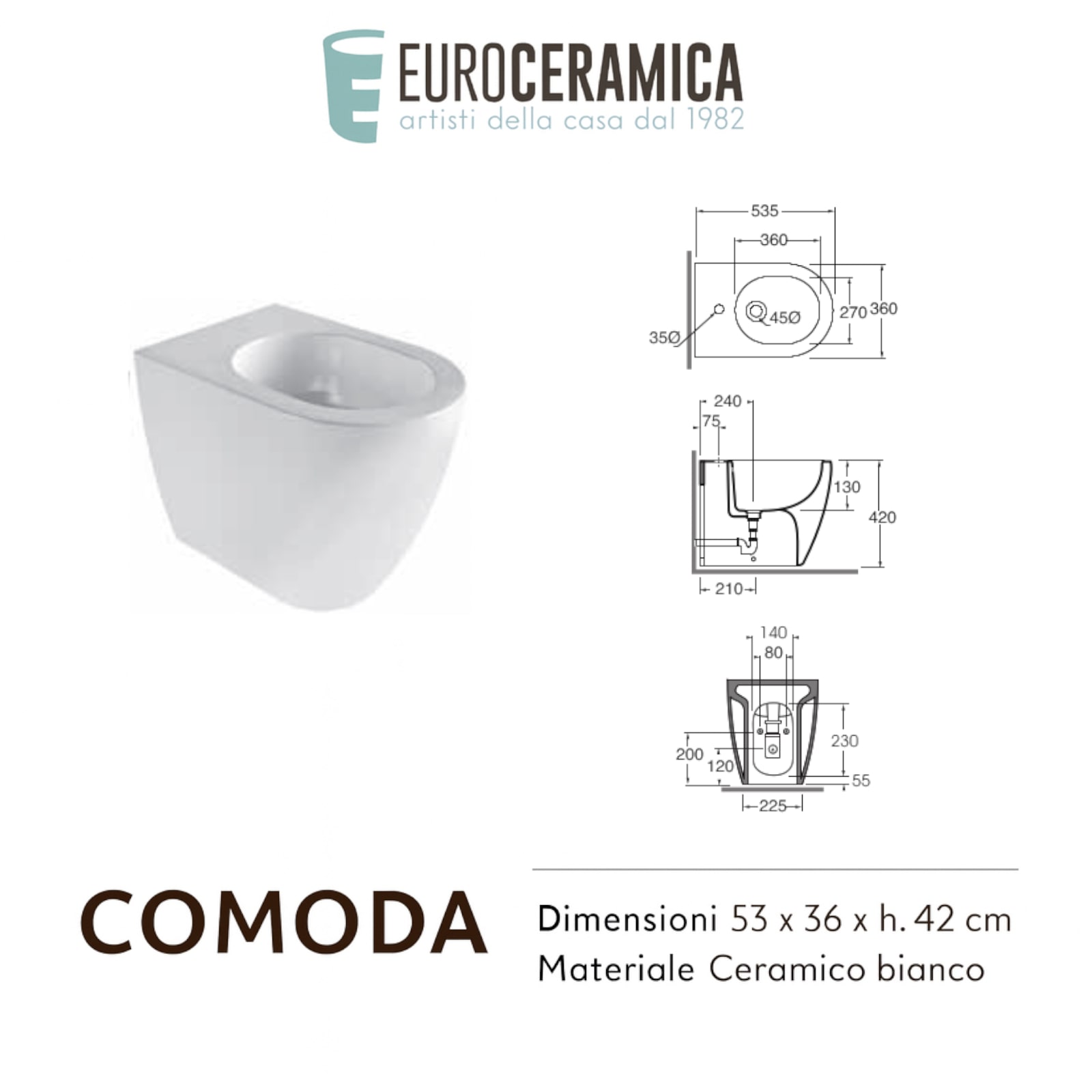 La collezione Comoda di Azzurra Ceramica è pensata per chi cerca un bagno elegante, semplice da pulire e con un tocco classico. Questa coppia di sanitari filo muro senza brida offre un design pulito e armonioso, perfetto per ambienti tradizionali ma attenti alla modernità. Realizzati in ceramica bianco lucido, garantiscono durata, brillantezza e un'estetica senza tempo. Il sedile slim soft close in materiale termoindurente assicura una chiusura silenziosa e piacevole, mentre lo sgancio rapido permette una pulizia più semplice e completa. Una soluzione stabile, comoda e pratica, fornita completa di fissaggi e coprivaso.