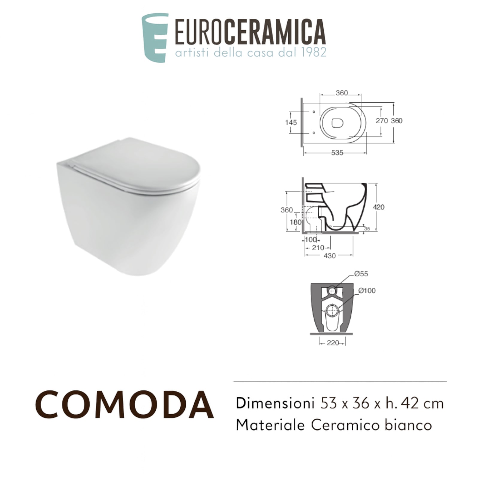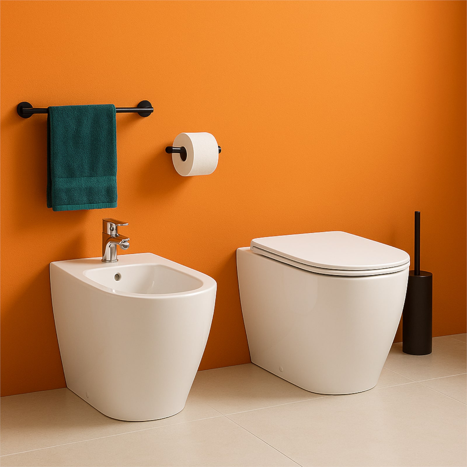 La collezione Comoda di Azzurra Ceramica è pensata per chi cerca un bagno elegante, semplice da pulire e con un tocco classico. Questa coppia di sanitari filo muro senza brida offre un design pulito e armonioso, perfetto per ambienti tradizionali ma attenti alla modernità. Realizzati in ceramica bianco lucido, garantiscono durata, brillantezza e un'estetica senza tempo. Il sedile slim soft close in materiale termoindurente assicura una chiusura silenziosa e piacevole, mentre lo sgancio rapido permette una pulizia più semplice e completa. Una soluzione stabile, comoda e pratica, fornita completa di fissaggi e coprivaso.