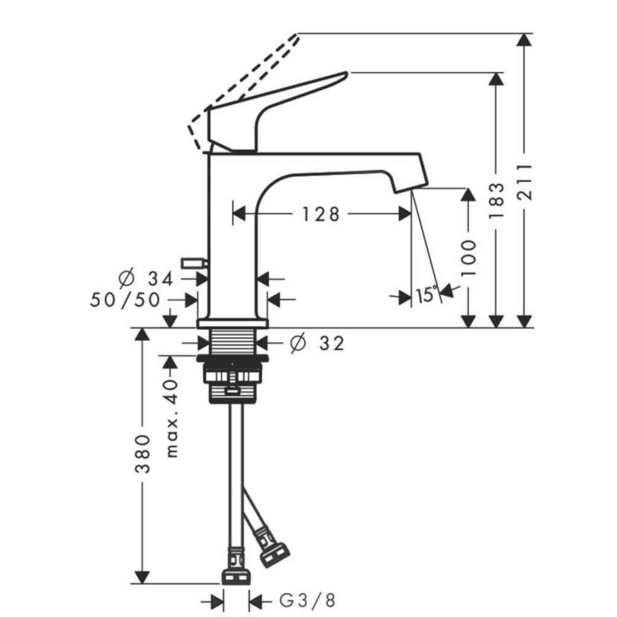 Miscelatore monocomando lavabo Citterio M di Hansgrohe con piletta di scarico a tirante