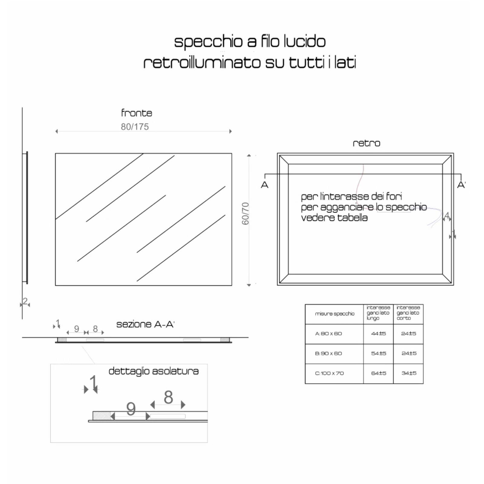 Specchio con retroilluminazione LED 100x70 cm