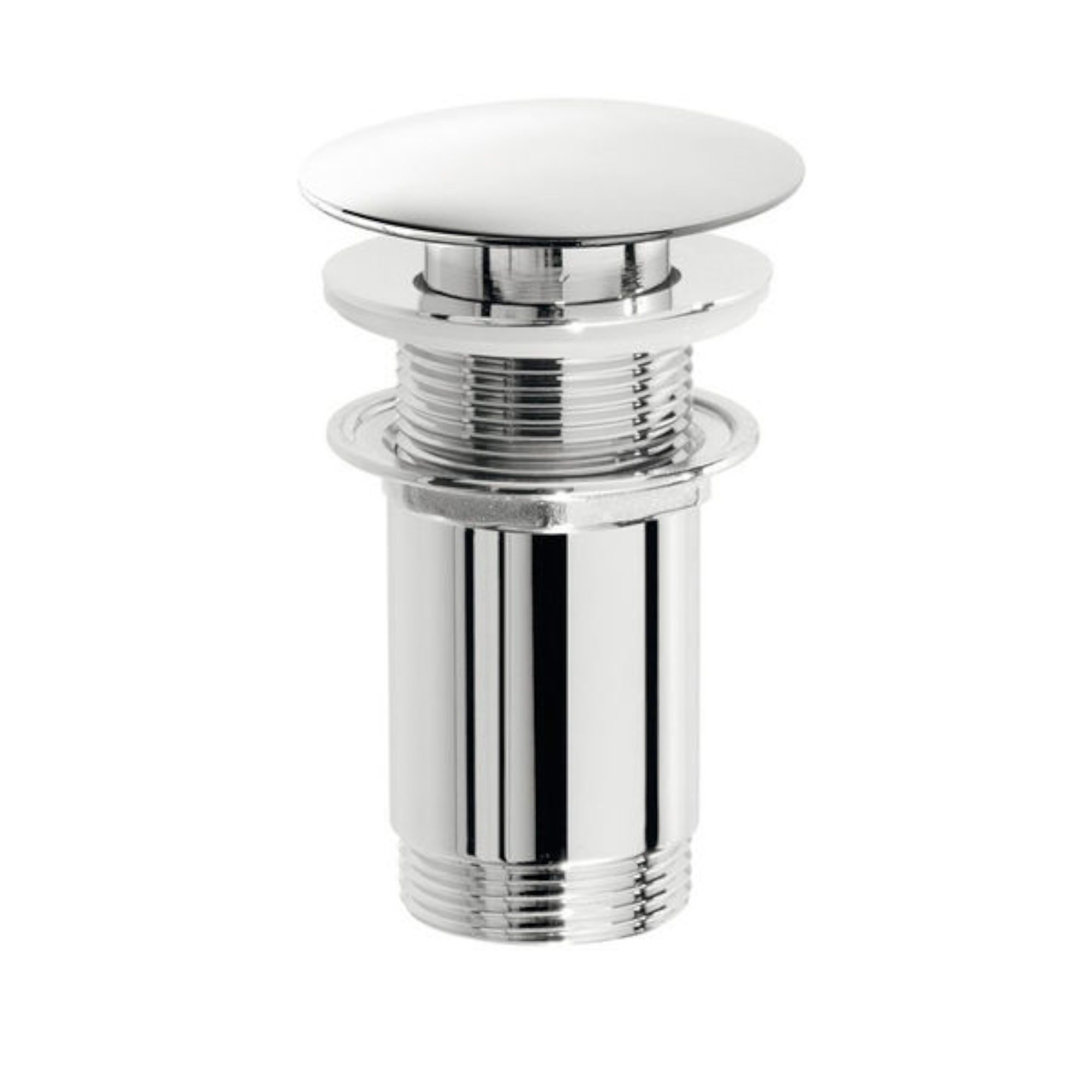 Piletta di scarico click clack tonda senza troppo pieno in ottone cromo