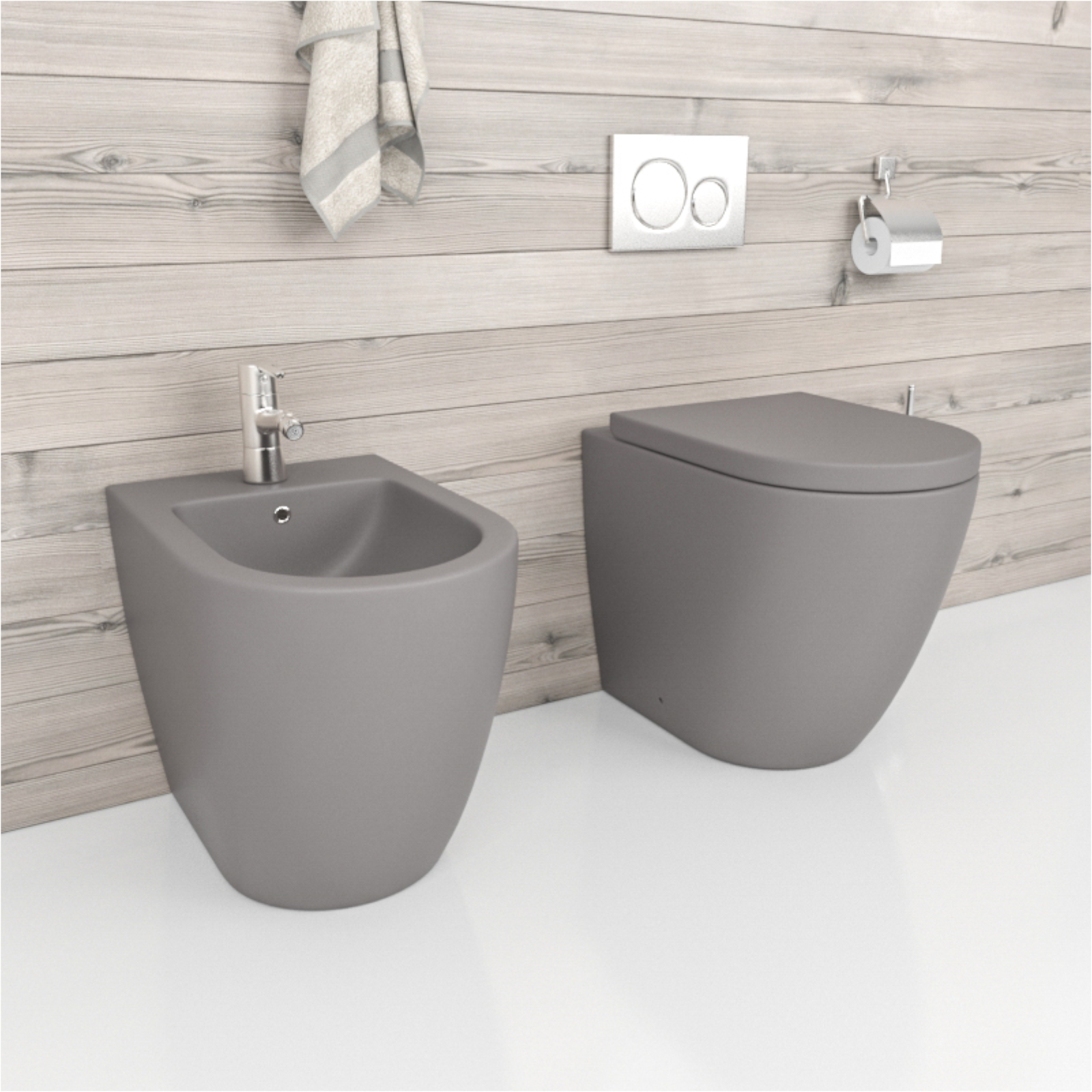 Sanitari filomuro grigio opaco rimless con copriwc slim soft close sgancio rapido | croma