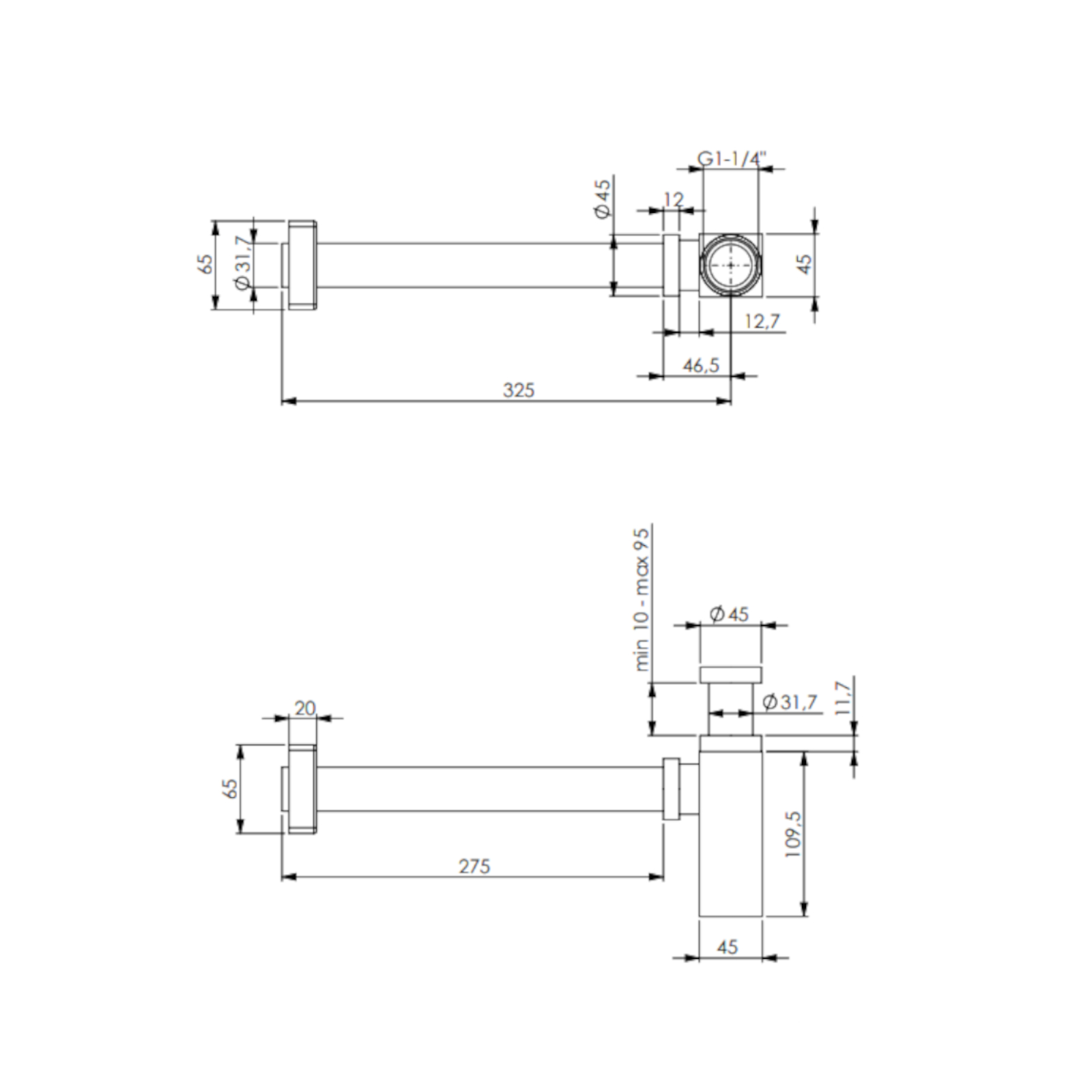 Sifone arredo quadro cromato da 1"1/4