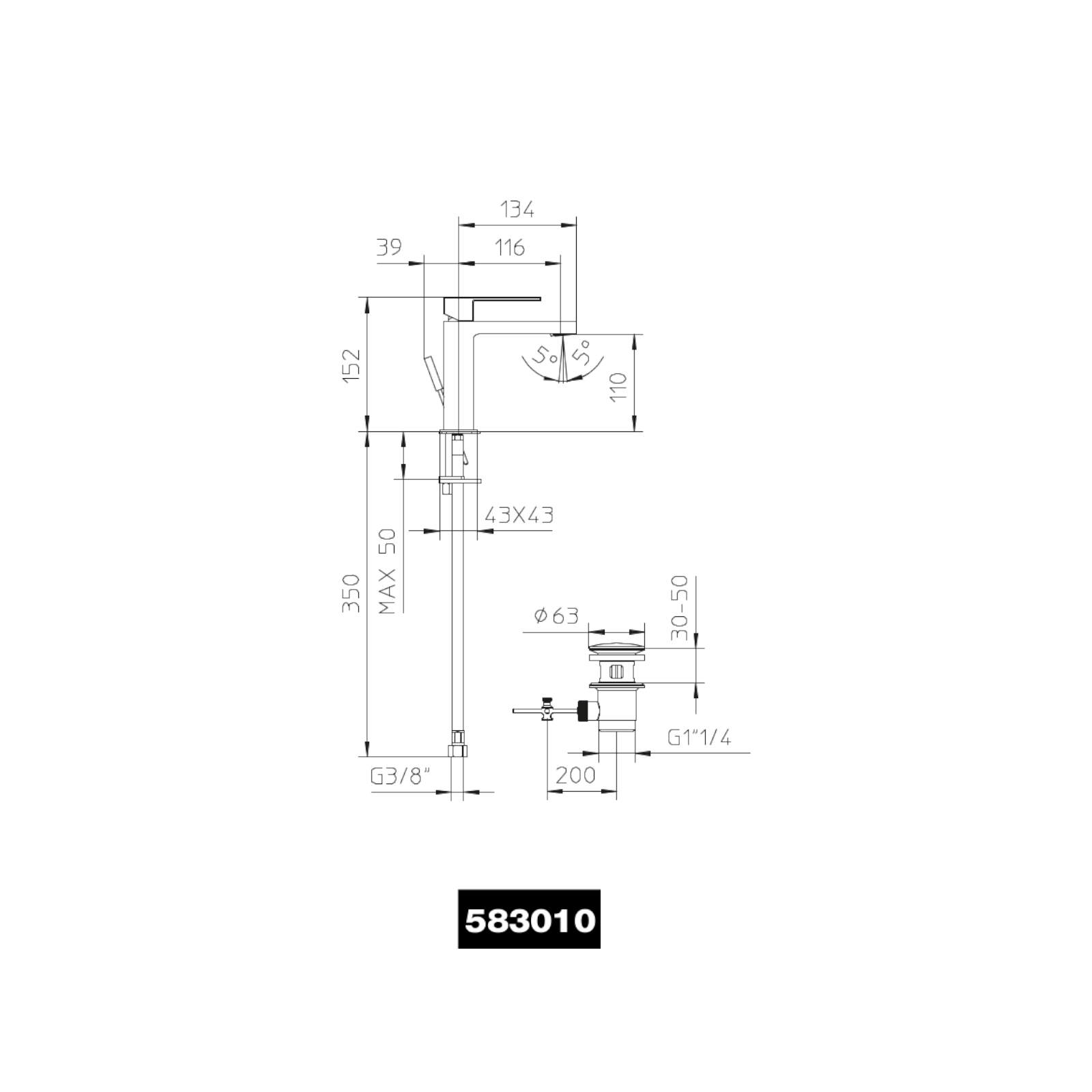 Miscelatore lavabo palazzani qadra con scarico tradizionale
