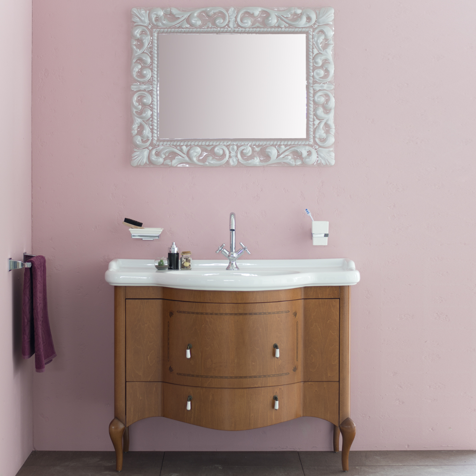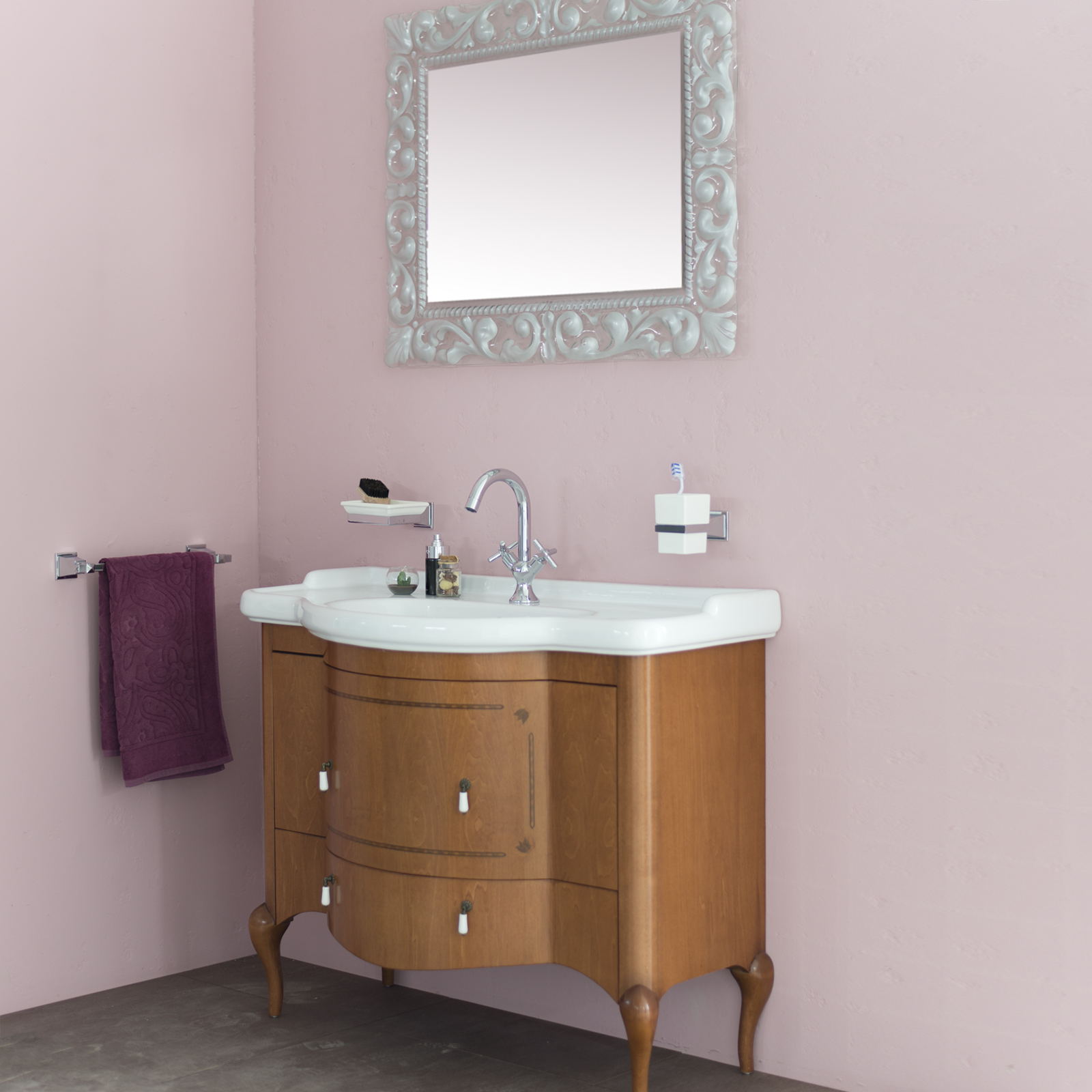 Un mobile da bagno in rovere chiaro e dalle linee antiche, per chi preferisce arredare la stanza da bagno in modo classico, con forme ergonomiche e adattabili in ogni ambiente.