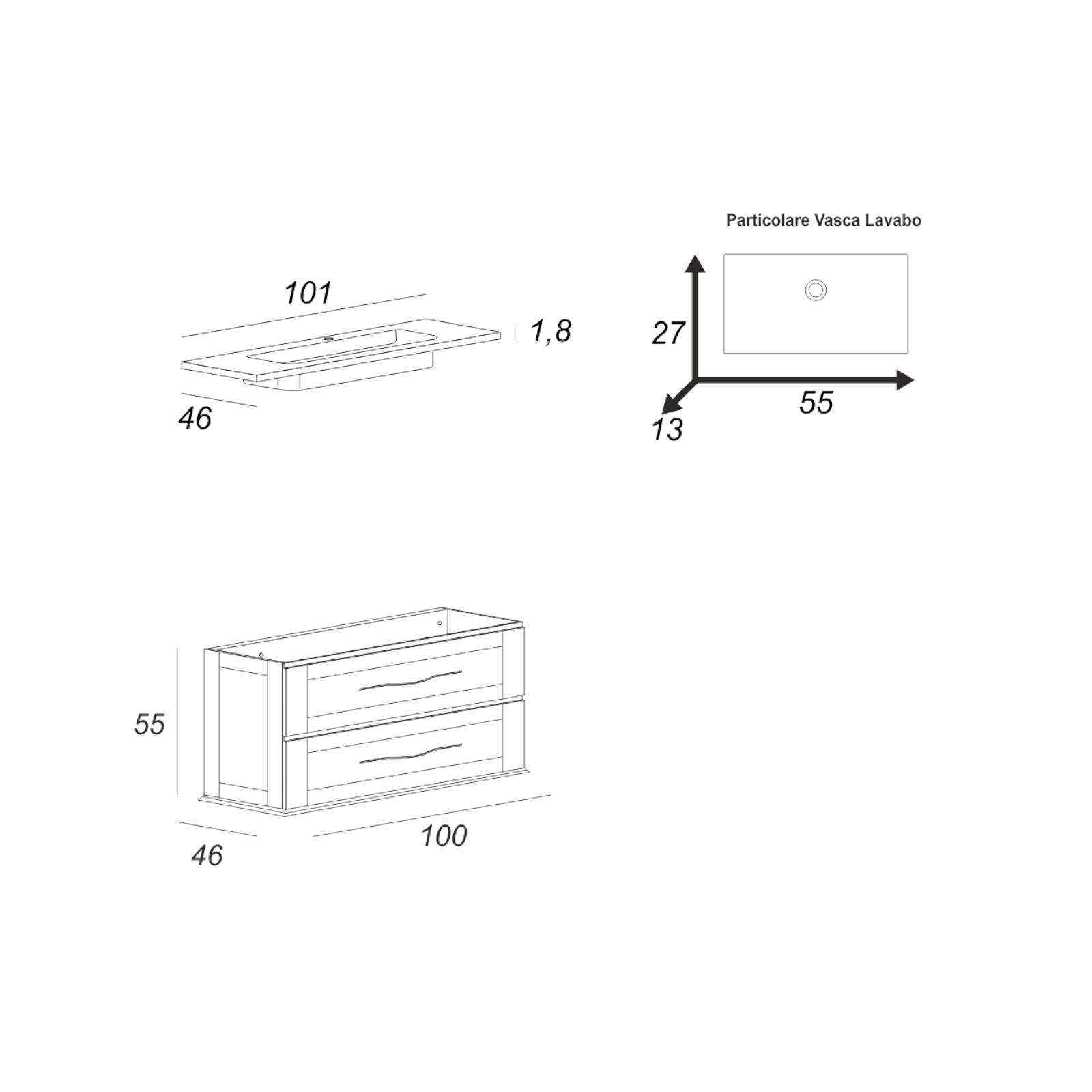 Dimensioni mobile: 102 x 46 x 55h cm