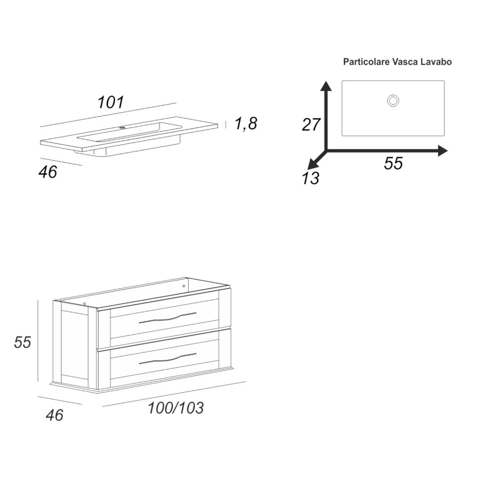 - Dimensioni mobile: 102 x 46 x 55h cm