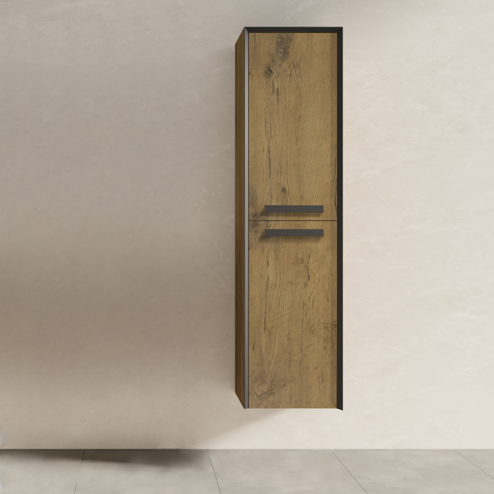 Colonna bagno h.160 cm doppia anta effetto legno con piedi nero opaco