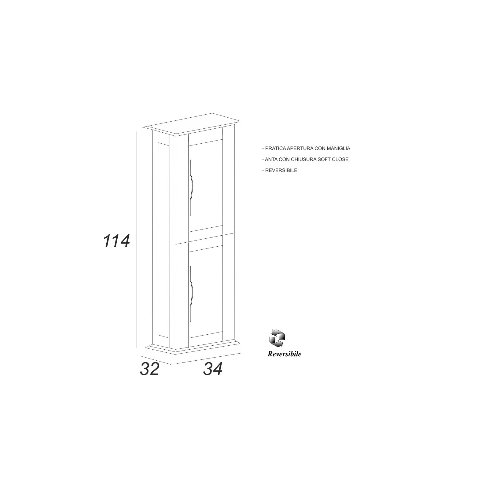 Colonna bagno sospesa h.114 cm grigio nuvola con apertura a doppia anta