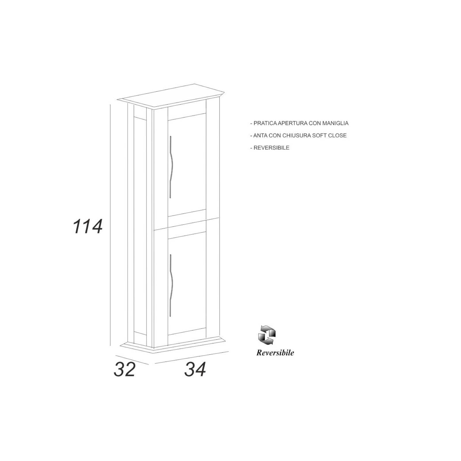 Colonna bagno sospesa h.114 cm nero grafite con apertura a doppia anta