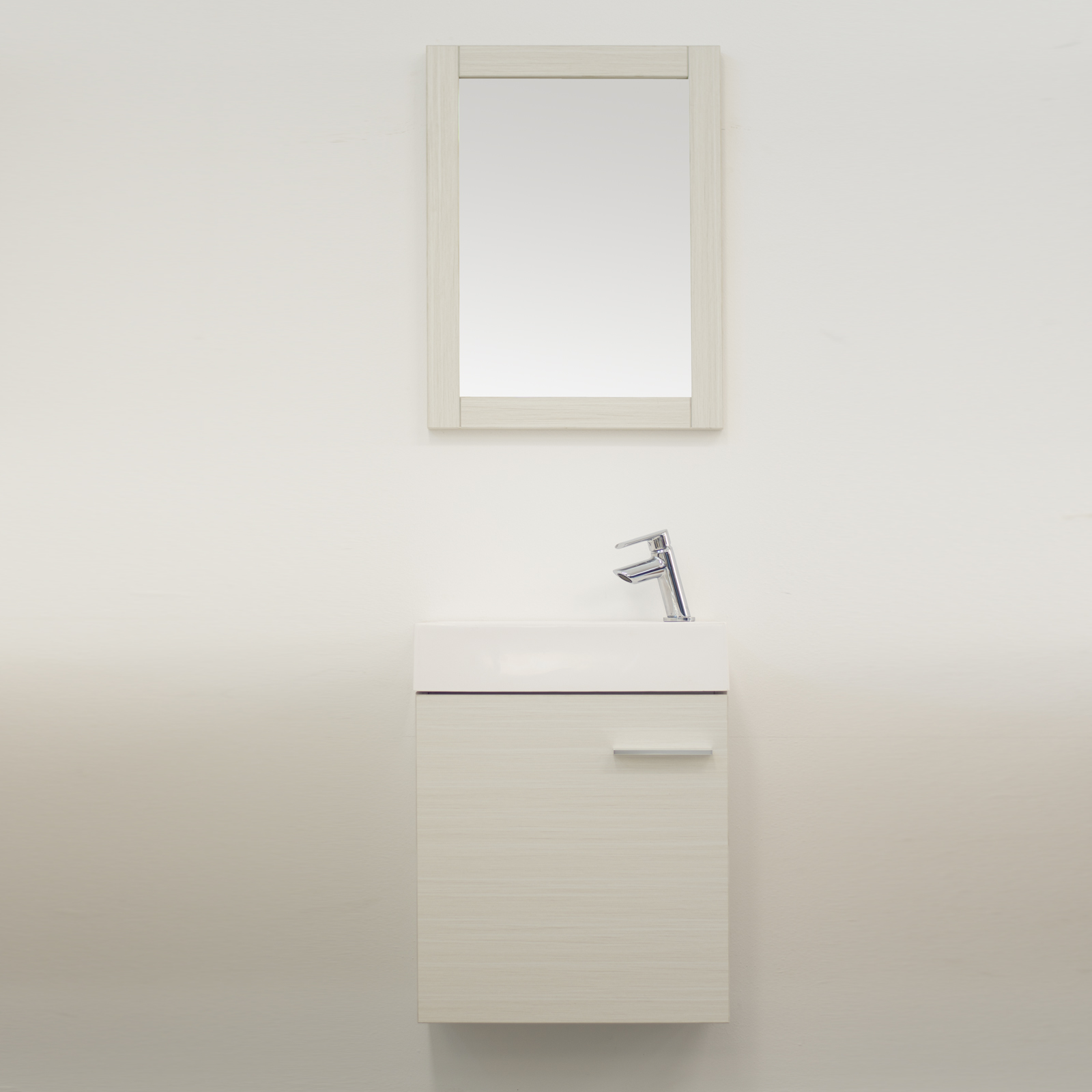 Link correlati a "Mobile sospeso bagno 45 cm bianco venato con anta e specchio con cornice"