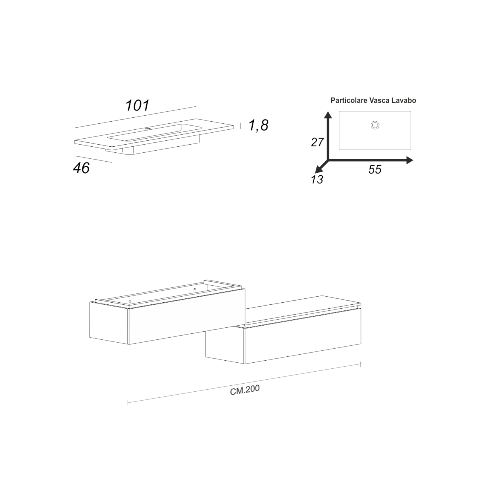 Mobile bagno da 100 cm rovere chiaro con doppio cassettone e specchio