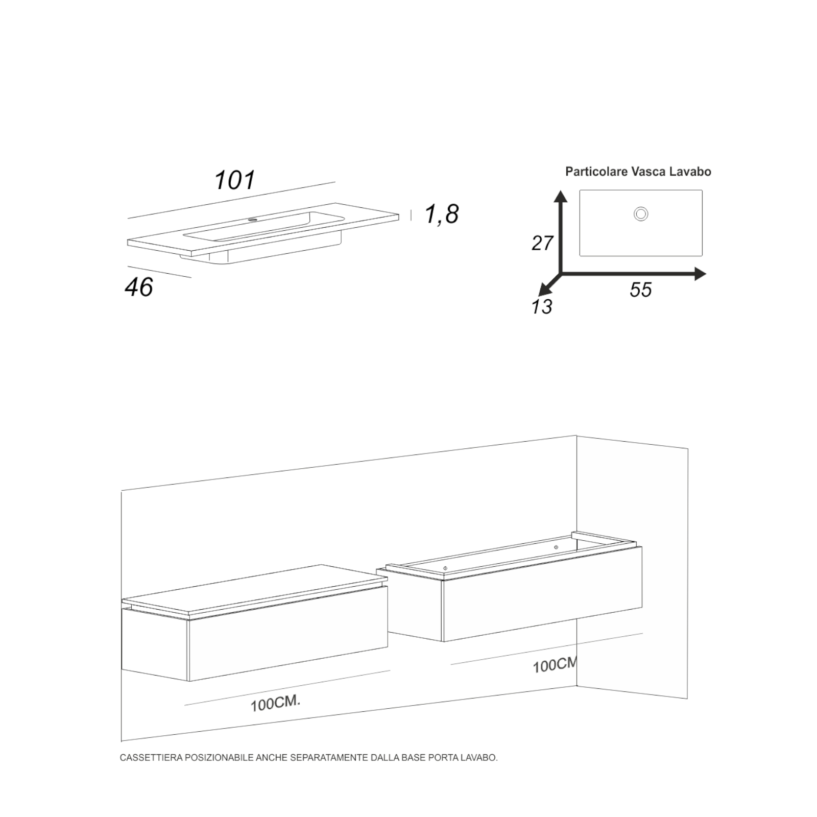 Mobile bagno da 100 cm rovere scuro con doppio cassettone e specchio
