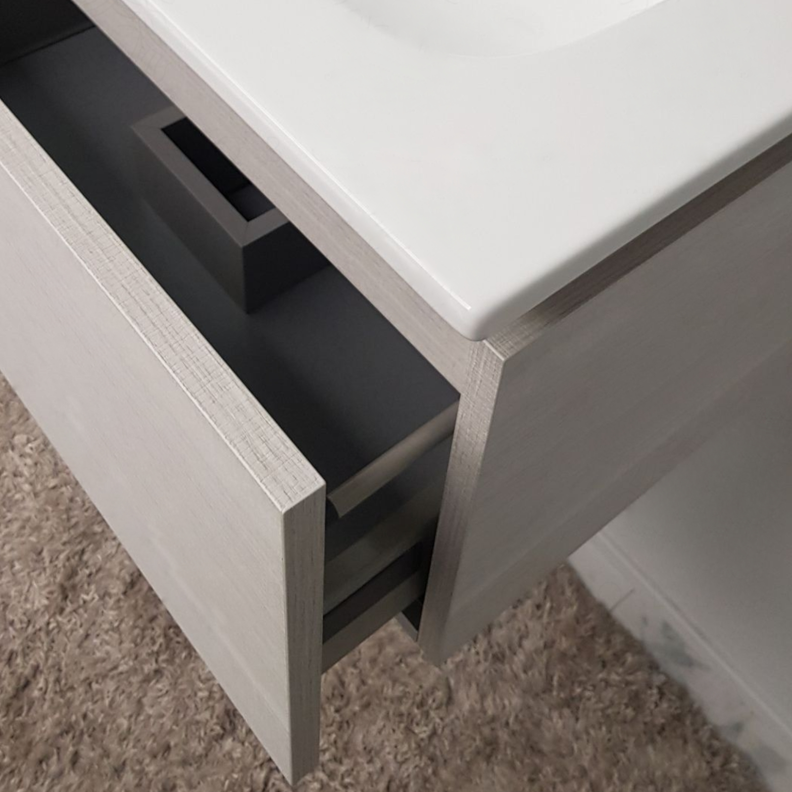 Mobile bagno da 60 cm rovere bianco con cassetto e specchio