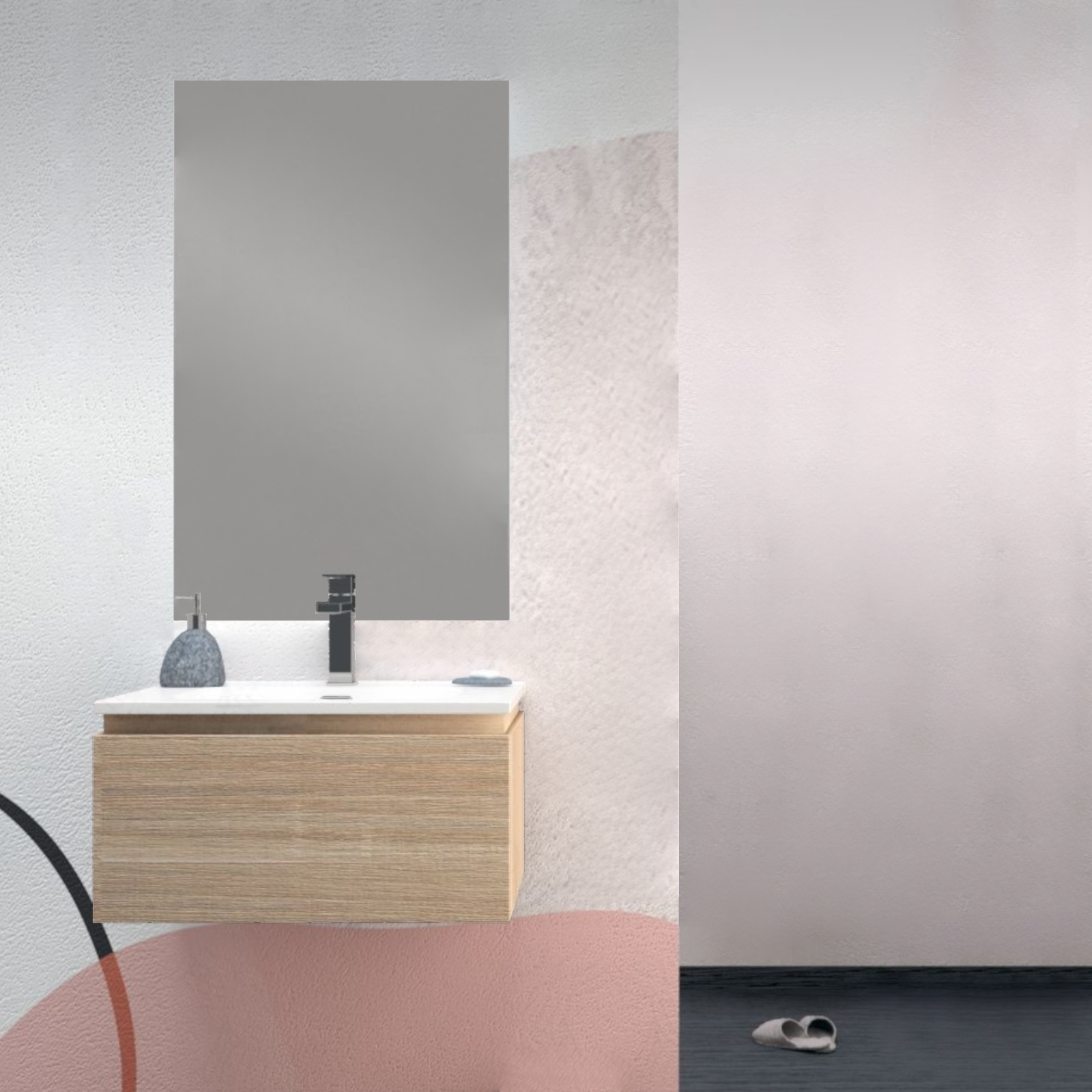 Mobile bagno da 60 cm rovere chiaro con cassetto e lavabo integrato