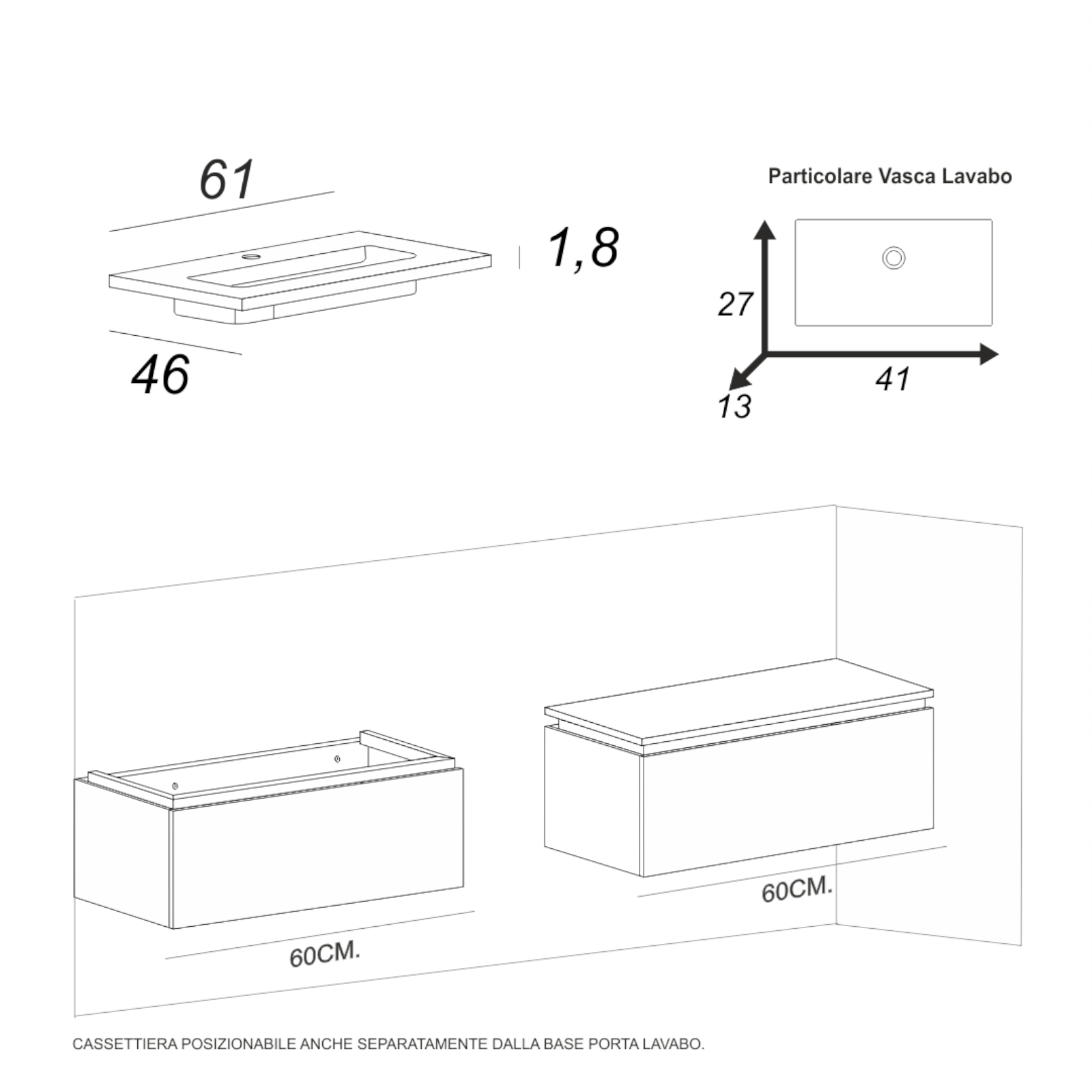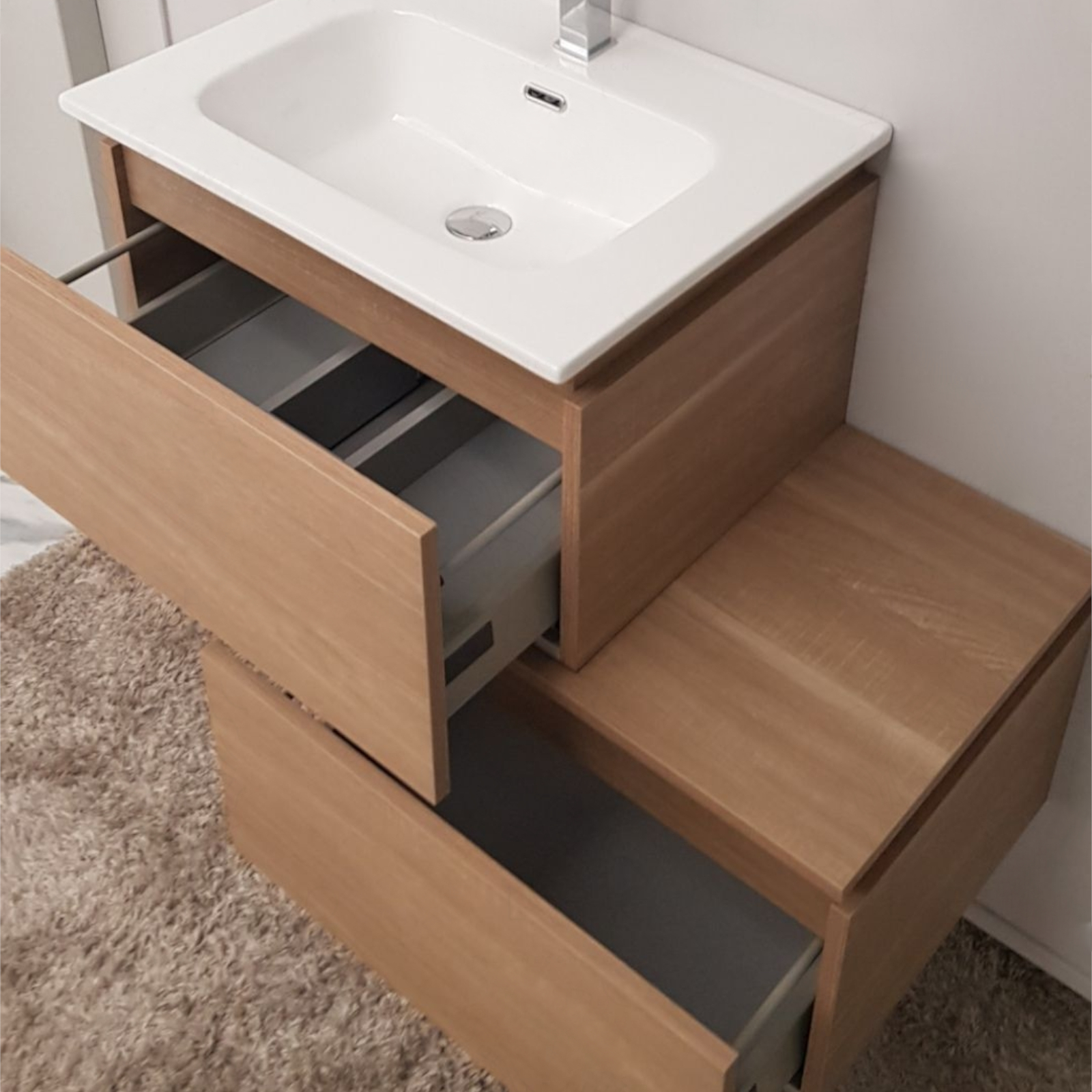 Mobile bagno da 60 cm rovere chiaro con doppio cassettone e specchio
