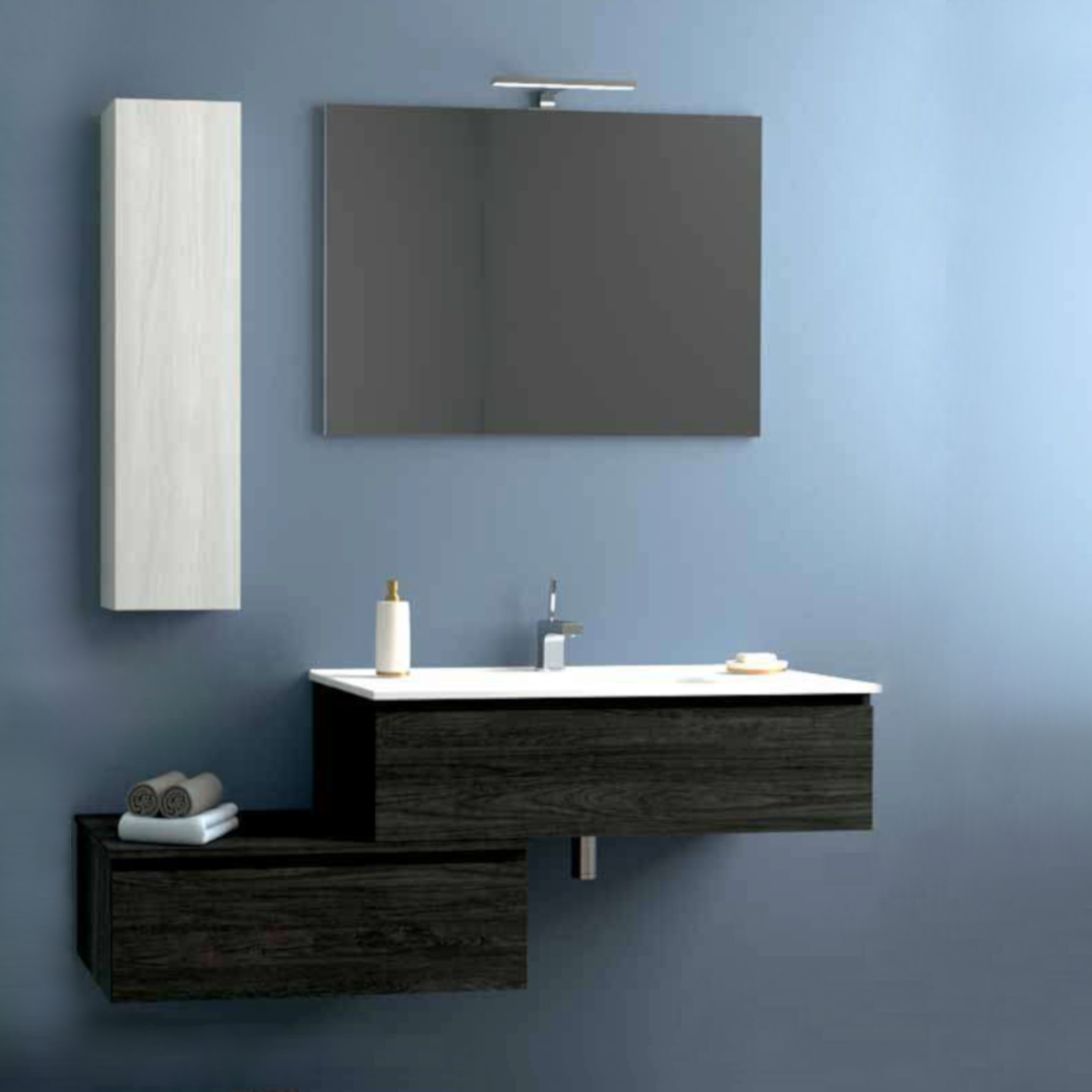 Mobile bagno da 80 cm doppio cassettone sfalsato olmo onyx con specchio e lampada led