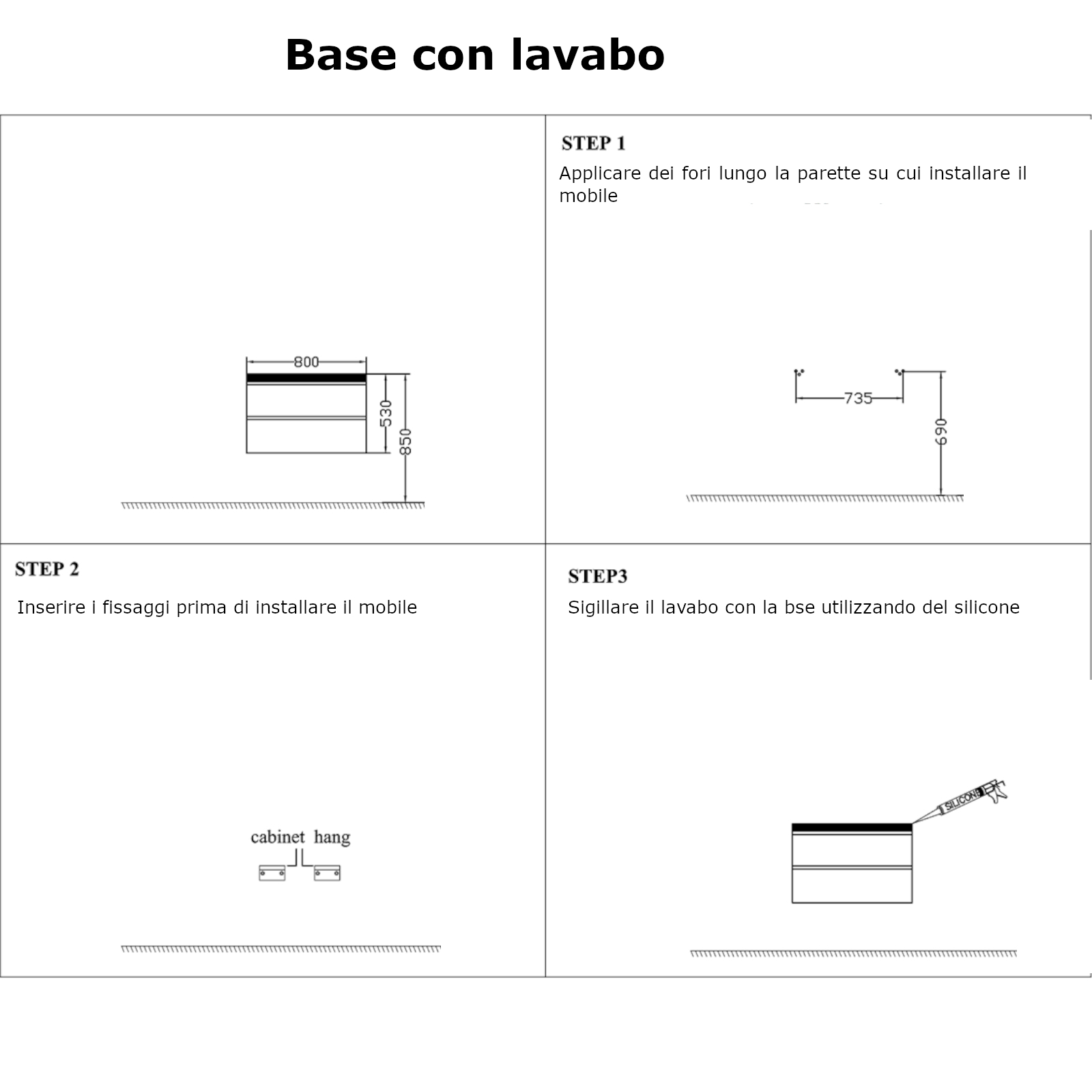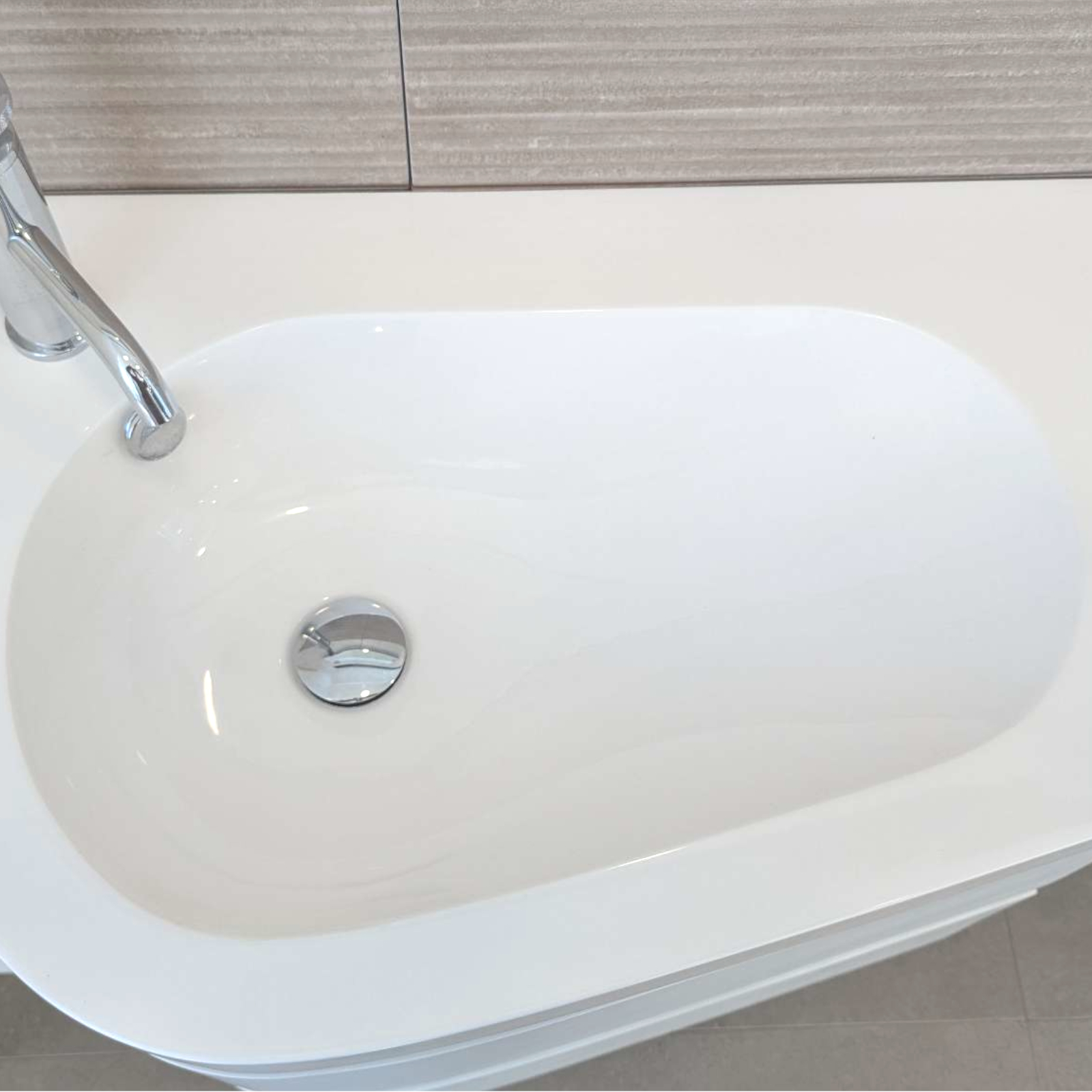 Valutazione cliente per "Mobile bagno sospeso 80 cm doppio cassetto bianco opaco con lavabo in mineral marmo e specchio"