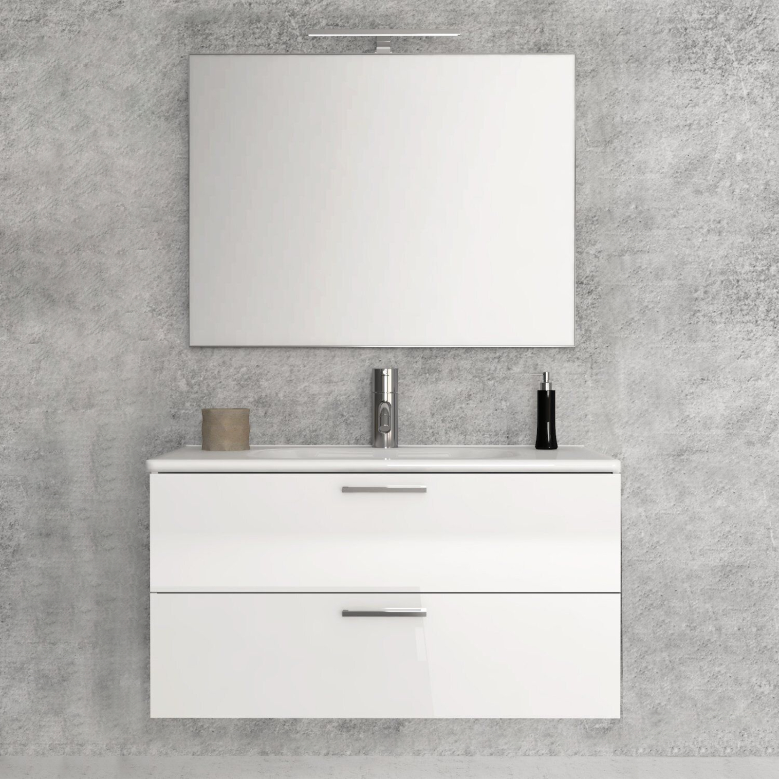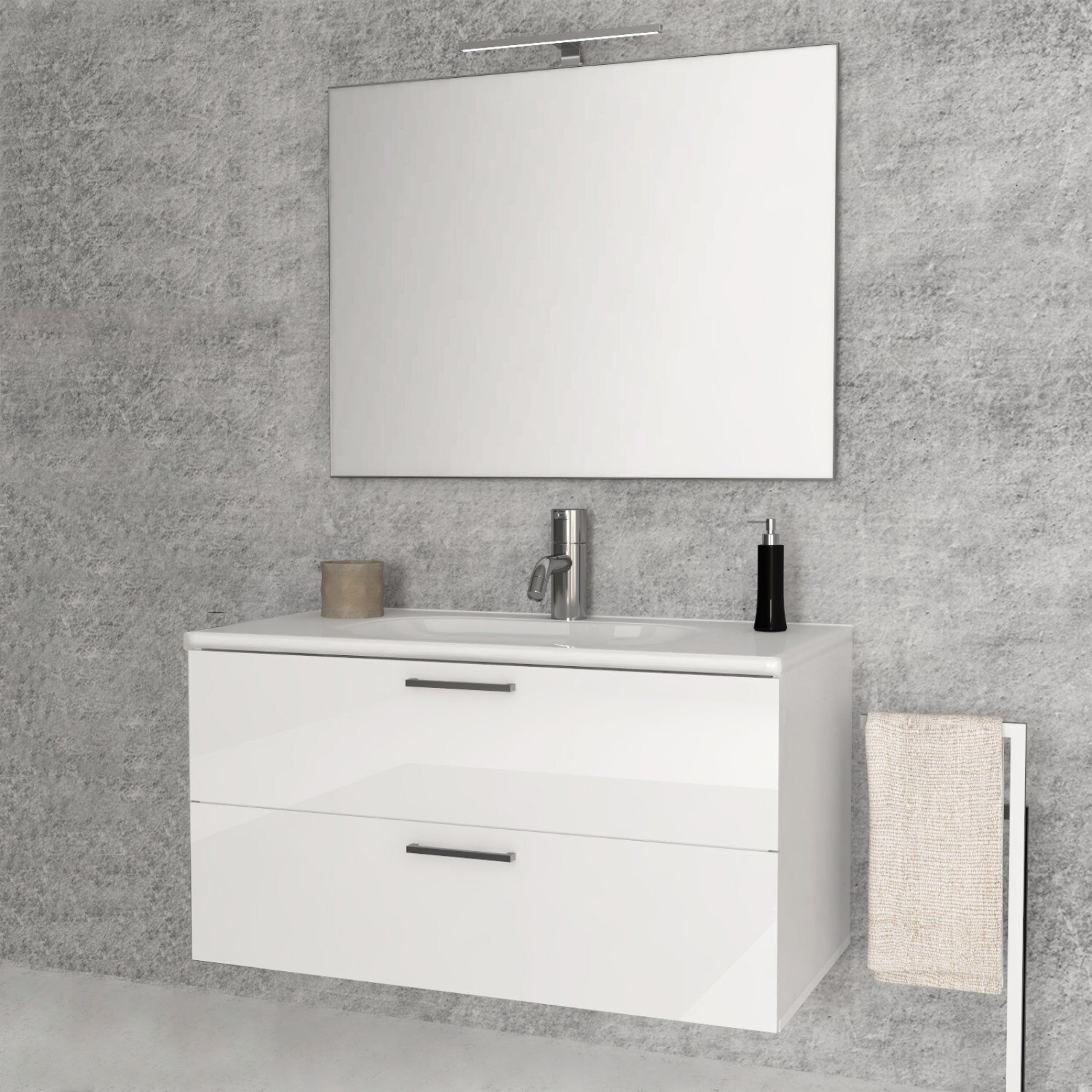 Mobile bagno sospeso Alice 80 cm bianco lucido, doppio cassetto, con specchio e lampada led