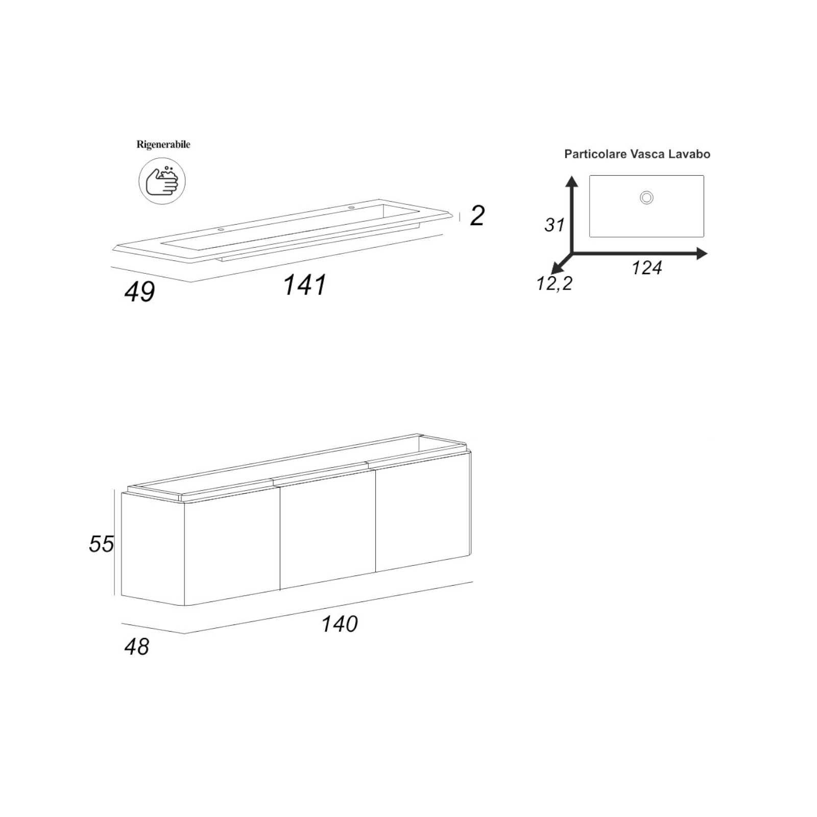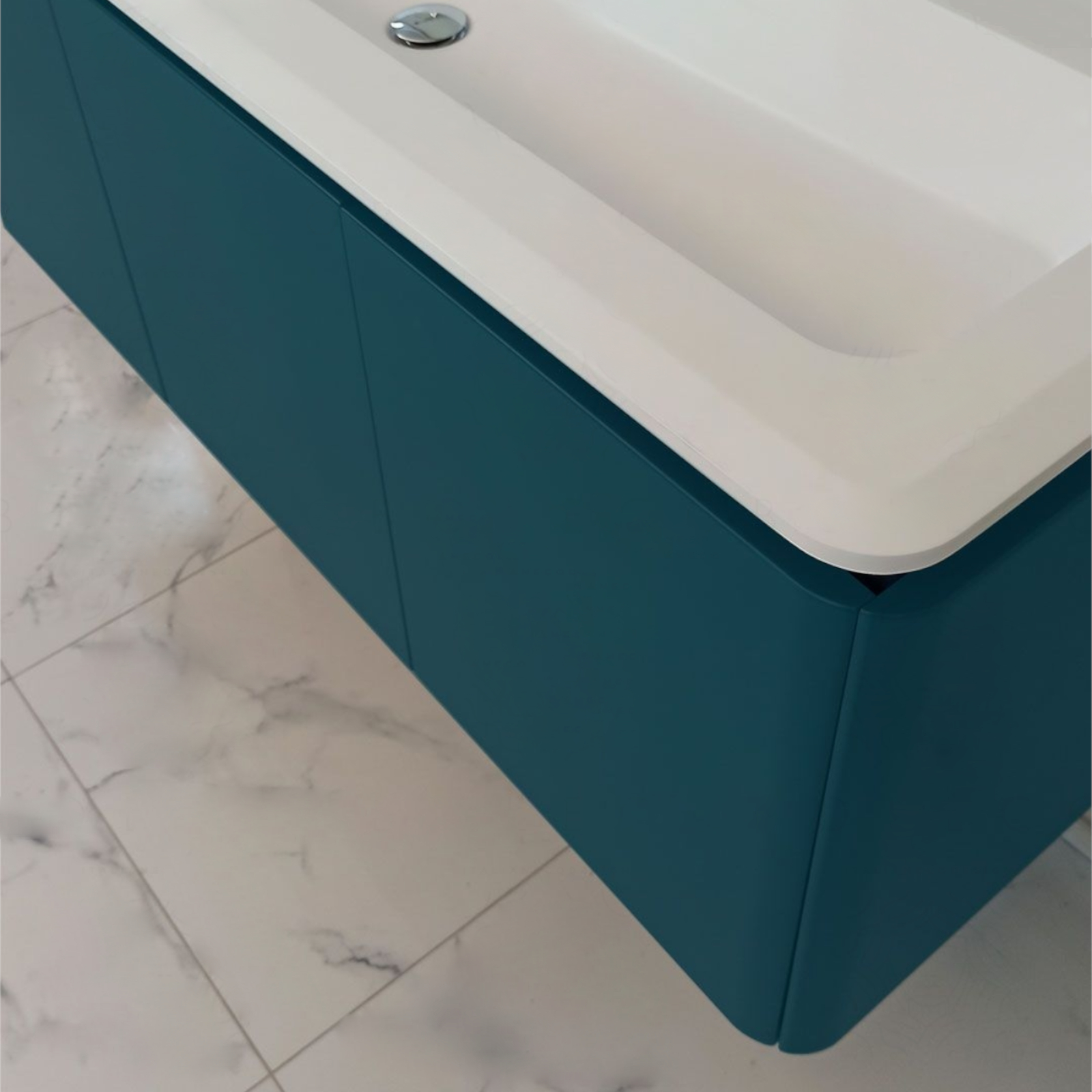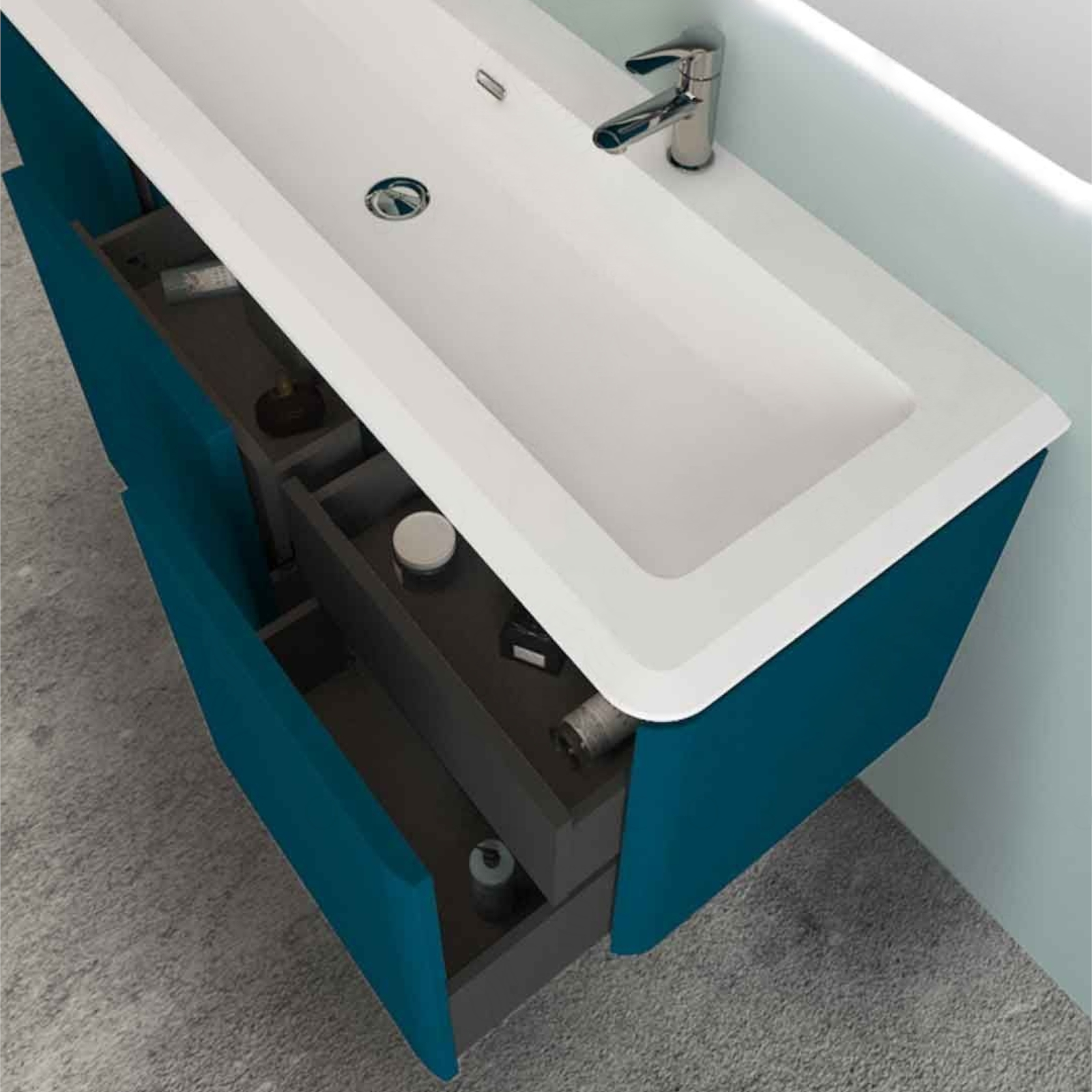 Mobile bagno sospeso cindy 140 cm blu petrolio con quattro cassetti e specchio led