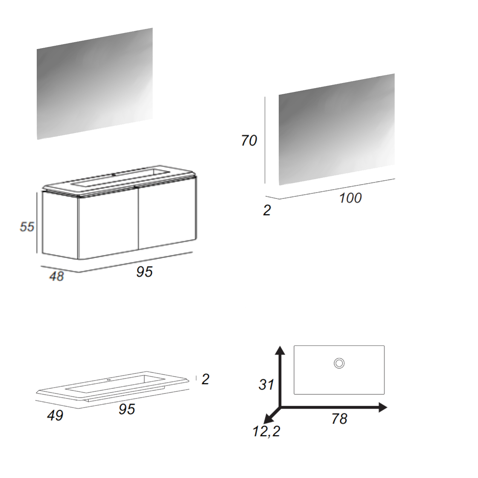 - Dimensioni specchio: 90 x 60 h cm
