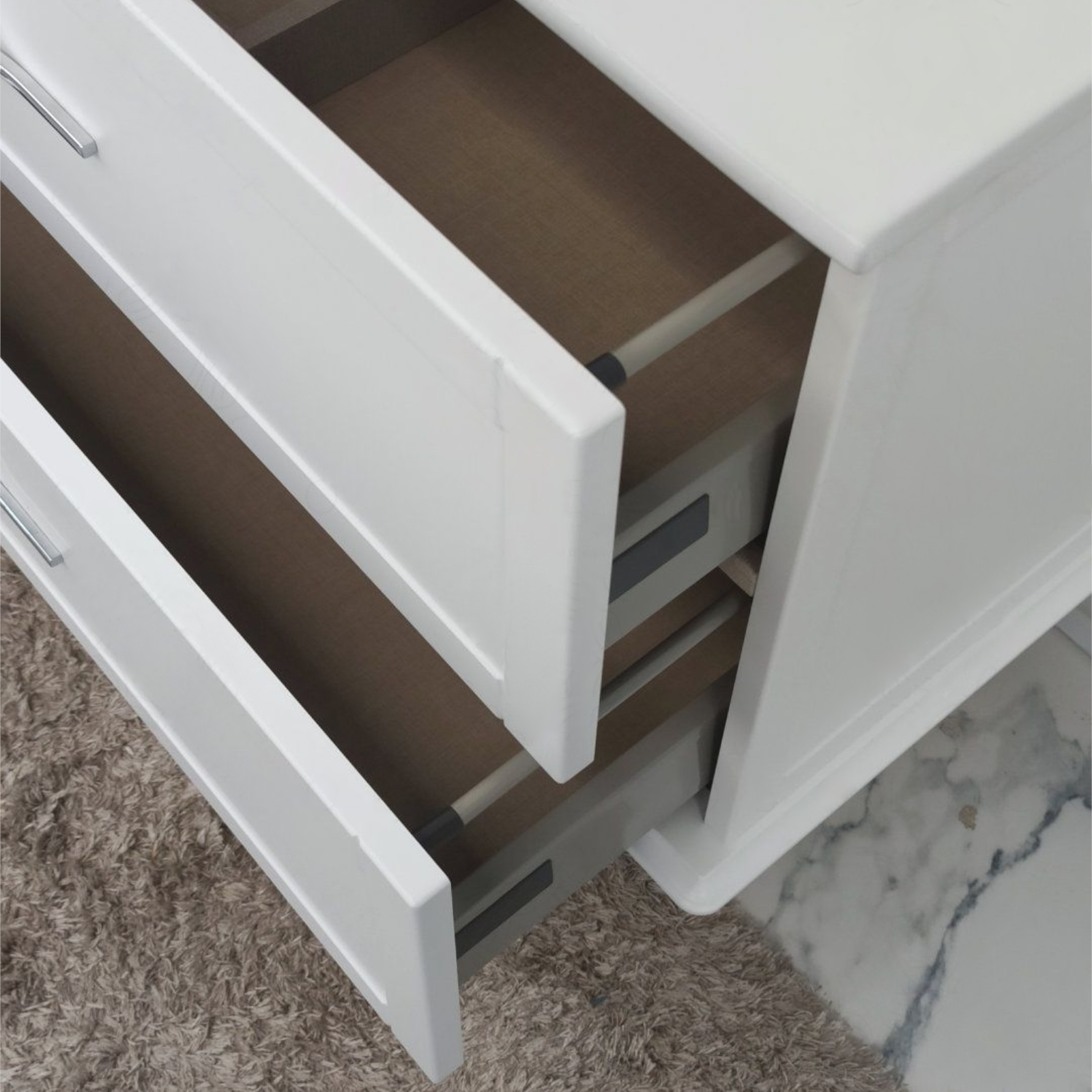 Realizzato con materiali di alta qualità, il mobile bagno Cleo offre una base sospesa in massello, dotata di ampi cassetti con modanature classiche e chiusura ammortizzata, garantendo un'organizzazione efficiente e un'apertura fluida.