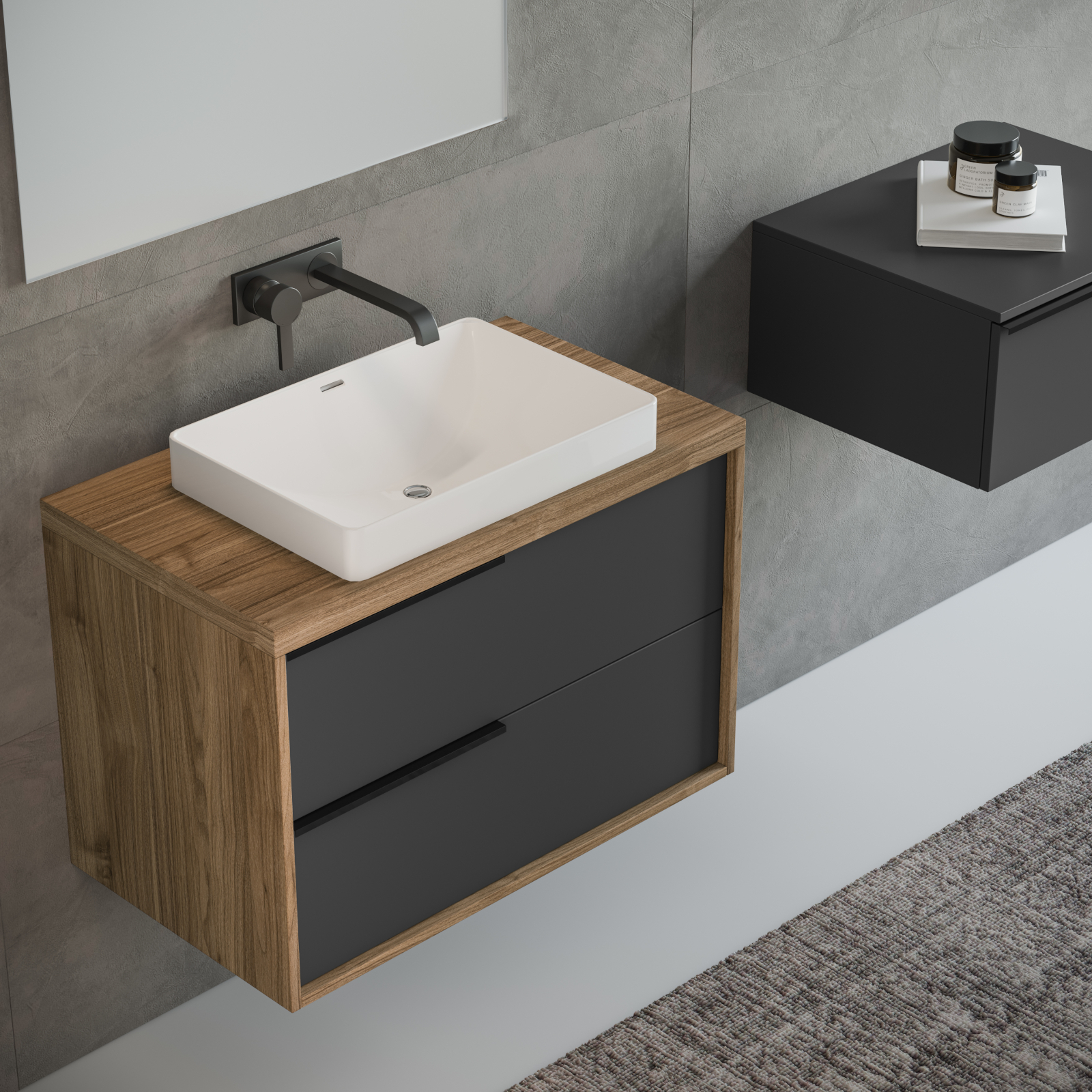 Mobile bagno sospeso grafite da 80 cm con doppio cassetto e specchio