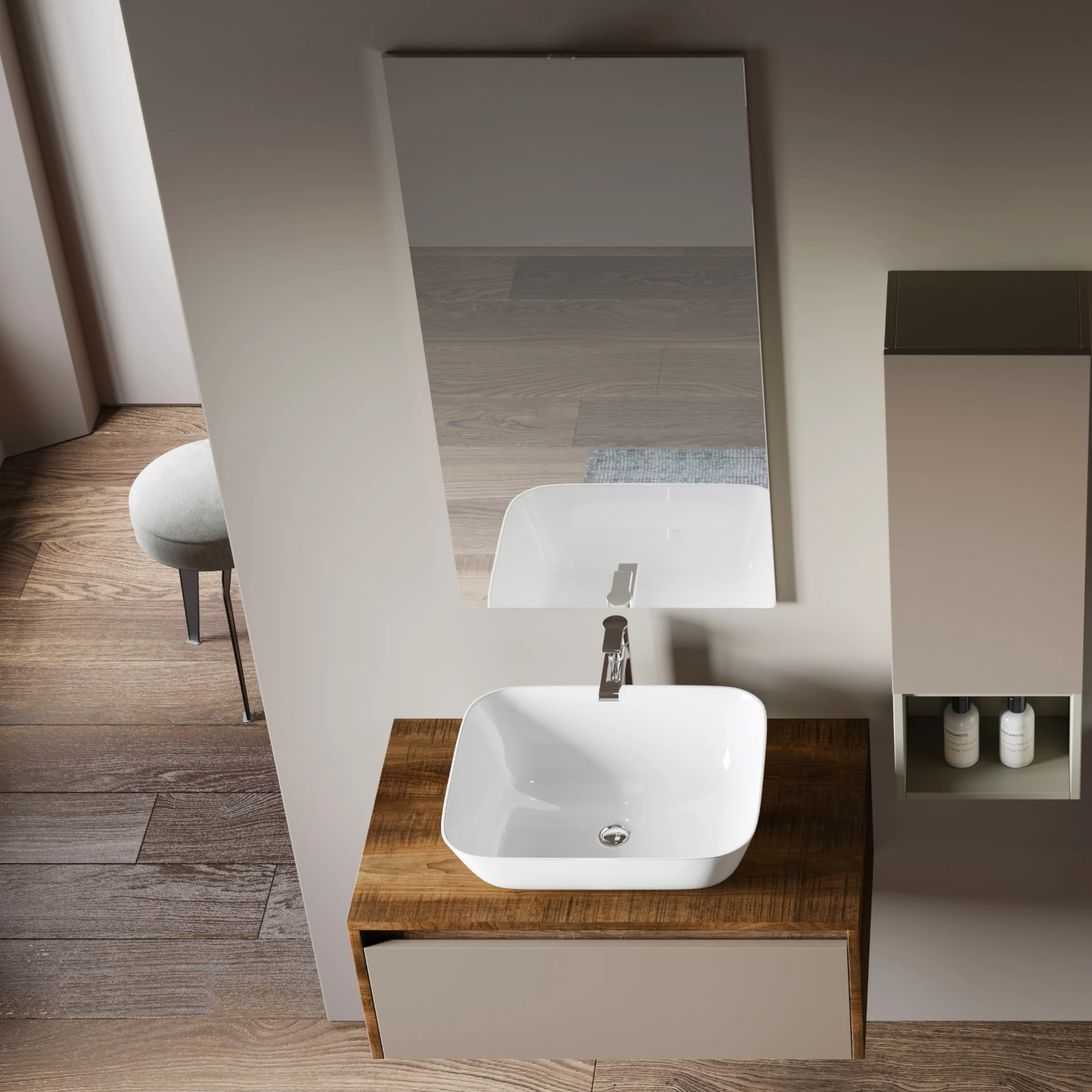 La qualità dei materiali impiegati nel mobile bagno sospeso Luna è uno degli elementi distintivi di questo prodotto. Realizzato con materiali durevoli e resistenti all'umidità, è progettato per durare nel tempo, affrontando senza problemi le sfide tipiche dell'ambiente bagno. La finitura color tortora non è solo una scelta estetica, ma garantisce anche una superficie resistente a graffi e macchie, mantenendo il mobile impeccabile con il minimo sforzo. La costruzione solida è pensata per supportare il peso degli oggetti più utilizzati quotidianamente, offrendo al contempo ampio spazio di archiviazione per mantenere il bagno organizzato e libero dal disordine. Questa combinazione di materiali e finiture assicura un prodotto che non solo attrae per la sua bellezza, ma conquista per la sua funzionalità.
