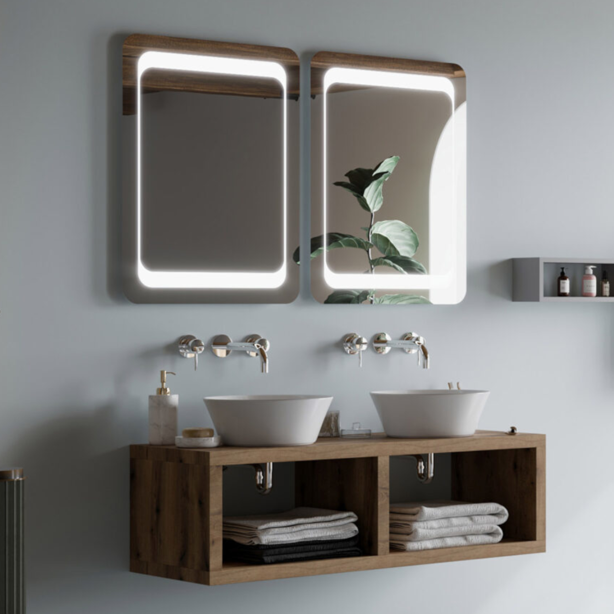 Composizione bagno sospesa da 120 cm rovere naturale con specchio filo lucido