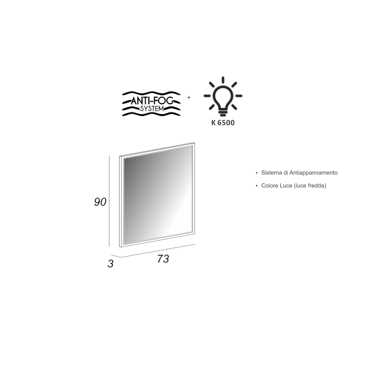 Specchio bagno led da 73 cm grigio nuvola con sistema antiappannamento