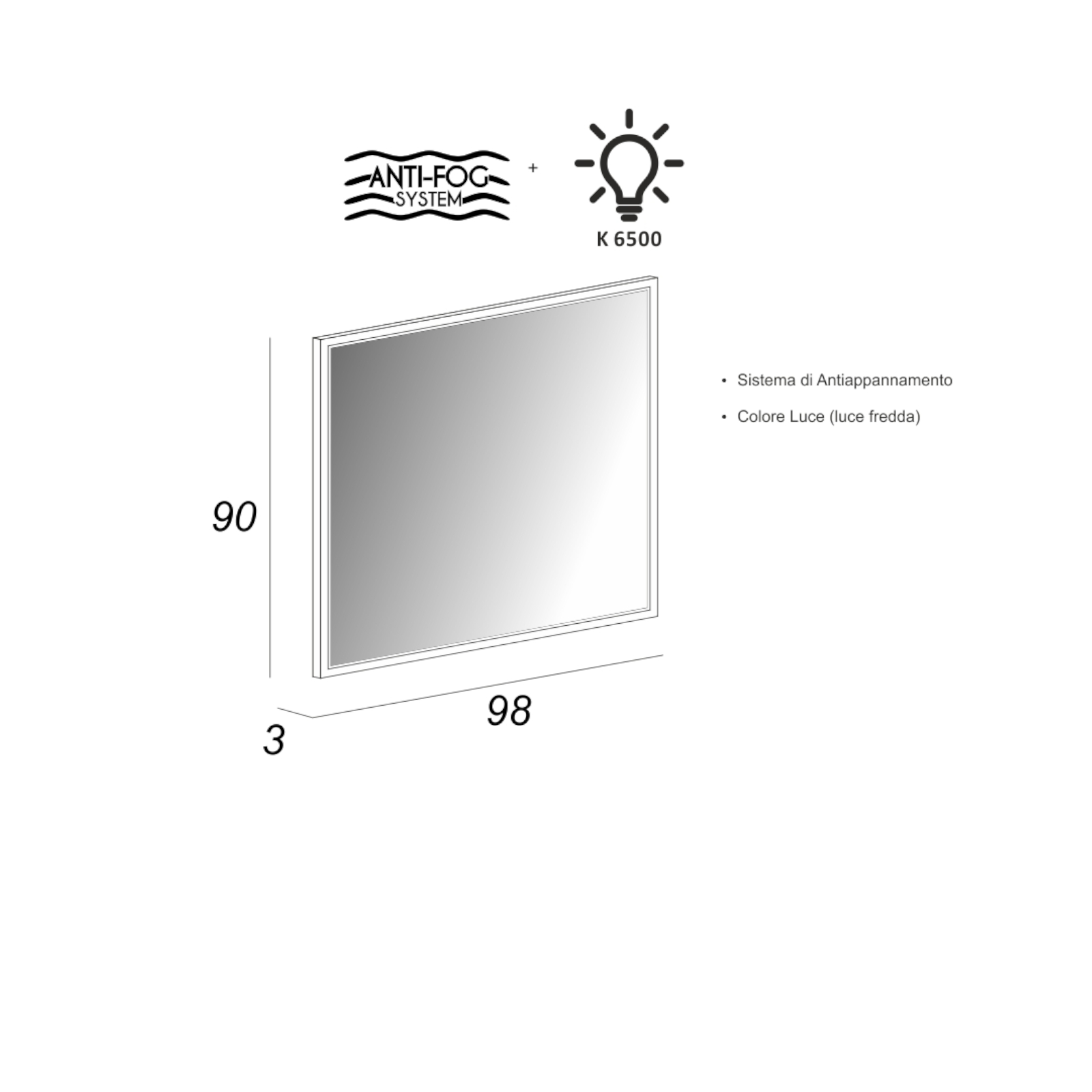 Specchio bagno led da 98 cm blu petrolio con sistema antiappannamento
